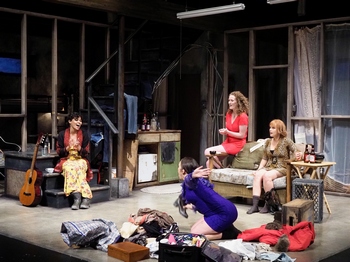 The apartment is a large room that has been subdivided into two bedrooms and a common room that also accesses a bathroom and a small kitchen. There's some privacy but not a lot. The women come and go as residents of the apartment. They work in low-skill, low-paying jobs, such as caretakers for the sick or nannies for children, house cleaners, or in factory sweat shops. They are commonly exploited, sometimes financially, such as being cheated on wages, sometimes sexually. They come from different cultures and they are all learning English, with varying degrees of success. They share a common hope that living and working in the U.S. will eventually mean that they will have better lives. Six actors (Jolly Abraham, Leslie Fray, Rae Gray, Brenda Meaney, Melissa Miller, and Xochitl Romero) portray women who live in the apartment during the period 2001-2017. The play starts at the most contemporary time and flashes back to different groups of residents. The constant is Renia (Ms. Meaney), who, like Ms. Majok, immigrated from Poland. Renia was once one of the residents, but eventually she came to own the entire building. Or, so she tells a young woman named Inna (Ms. Gray), who knocks on the door, picks a fight, and eventually slugs Renia. Instead of becoming angry, Renia invites Inna to move in. At first, she demands a daily rent payment, but eventually she invites Inna to stay at no chargeas long as she doesn't tell the others about the bargain. Why Renia, who has gone over time from vulnerable to tough, would make such an offer becomes clearer as the play progresses. But there are no easy answers here. Perhaps Inna was right to slug Renia, perhaps not. I never saw a clear answer to that question emerge. And, to me, that seems to be the problem. The play wants to show how forces that keep immigrants, particularly women, from moving ahead are ones that have been present for some time. But the time shifts intended to illustrate this point, as well as to tell the story, don't yet entirely make sense. And the variety of characters played by four of the women get confusing. I suspect that there's a fine play in there, but it's not on display yet. Ms. Majok has shown willingness to make substantial changes to serve her dramaturgy: the April world premiere at LCT3 in New York was three acts, and this version is two acts, for example. Perhaps loving these characters a bit less can help present them to audiences in a streamlined but more effective manner. The Playhouse has certainly given Queens a first-rate production, starting with Carey Perloff's sensitive direction, resulting in first-rate performances. David Israel Reynoso has provided an utterly stunning scenic design that situates the basement apartment in its building, as well as on its exterior block, where some scenes occur. The design needs a virtuoso lighting design to succeed, and Lap Chi Chu has provides one. Denitsa Bliznakova's variety of costumes serve to bring out the characters' native cultures and values. Mark Bennett's sound design helps keep the actors' accented English (coached by Christine Adaire) clearly heard. I wish Ms. Majok well as she continues to develop what may become a very significant piece of theatre. Audiences may come away confused and frustrated with the current production, however. Queens, through July 29, 2018, at La Jolla Playhouse's Sheila and Hughes Potiker Theatre, 2910 La Jolla Village Drive, La Jolla CA. Tickets are available by calling 858-550-1010 or visiting lajollaplayhouse.org. Performance times are Tuesdays and Wednesdays at 7:30pm; Thursdays, Fridays, and Saturdays at 8pm; Sundays at 7pm; and matinees Saturdays and Sundays at 2pm. |