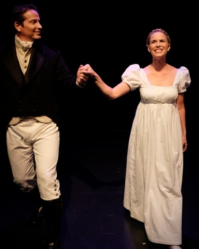 Austen's story is set in southwest England in the Regency Period, during a late pause in the Napoleonic Wars. Anne Elliott (Allison Spratt Pearce), a member of the aristocracy, is deeply in love with a poor commander, Wentworth (David S. Humphrey), who proposes marriage, a prospect that initially excites Anne. Owing to Wentworth's lack of money, Anne's godmother, Lady Russell (Linda Libby at the performance attended, but currently played by Kerry Meads), tells her not to marry him. Eight years later, in 1814, Wentworth, now a captain, has proved himself in battle and is respected for his courage in the Napoleonic Wars. Anne, however, isn't over her breakup with her former beau and hopes to resume her relationship with Wentworth. The Coronado production takes some time to get the audience fully emotionally invested in the characters and the evening. Anne and Wentworth's relationship is depicted in a brief prologue, which serves to make the initial ups and downs of their affair feel rushed. Once the two of them are reunited, however, it becomes easier to get attached to them, mainly because the writers generally let the plot progress naturally. Outside of characters saying the title of the show a few too many times, the show does keep audiences interested in both the central conflict and the relationships that Anne forms with other English citizens. Jeffries' songs, such as "Only Anne" and "The Concert," express the unresolved feelings the couple have for each other. The writers also incorporate a good amount of humor in the play. Taw's writing has some fun at the expense of other members of the Elliot family and the nosy residents of Bath, known as The Gossips (Abigail Allwein, Megan Carmitchel and Omri Schein). Some of the more comedic numbers, such as "The Elliots of Kellynch" and "The Pump Room," are memorable. All of these moments are sung well and acted expressively by the performers. Pearce and Humphrey are the only performers who play a single role, and they are given the greatest amount of development. Both of them sing with romantic emotion and cause the audience to hope that they end up together. Carmitchel and Schein are given a number of hilarious moments in the several parts they play, and other co-stars, such as Jordan Miller, Allwein, John Rosen and Lauren King Thompson, are strong in sections that range from light to reflective. Libby showcased such range-playing roles as the selfish Russell and Mrs. Harville, the much kinder poor wife of Wentworth's friend Captain Harville (Rosen). These performances couldn't be possible without the direction of Producing Artistic Director Robert Smyth. Smyth treats the moments of heavy dialogue and the songs with an equal amount of care. He puts a lot of emphasis on the plot, rather than making the evening a spectacle. Jeanne Reith's costumes and Javier Velasco's choreography are period friendly and never feel out of place. Nathan Peirson's lighting emphasizes the intimate sequences, particularly when Pearce and Humphrey sing their solo numbers. Equally important to the musical's effectiveness is the orchestra, which features conductor/keyboardist Patrick Marion. The five musicians shine in a sequence that features the songs "Home is the Sailor"/"Glory & Gold." They start this part of the show with a sense of celebration, only to scale back as Wentworth begins to talk about his experiences in war. Vintage Austen drama and moving songs make Persuasion a warm and romantic production. There's no denying that Austen fever is here to stay. Persuasion, through November 18, 2018, at Lamb's Players Theatre, 1142 Orange Avenue, Coronado CA. Performances are Sundays through Saturdays. Tickets start at $28.00 and can be purchased online at www.lambsplayers.org or by phone at 619-437-6000. |
