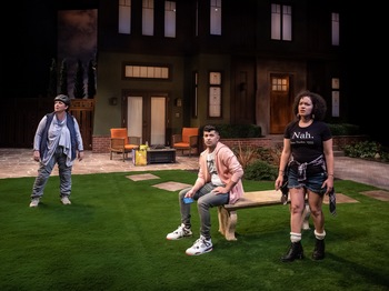 Rolan (Behzad Dabu) and Caroline (Shannon Matesky) have come back to Caroline's childhood home in Evanston, Illinois, at the end of a third date. It's a big house (the scenic design is by Arnel Sancianco) and Caroline's parents are away. The couple make romantic small talk, commenting in passing on the sound of sirens penetrating what is normally a quiet neighborhood. They are interrupted by Josephine (Linda Libby), a neighbor Caroline knows from childhood. Josephine tells them of an emergency that has overtaken the entire region, points them to a website she claims is the only place where accurate information is available, and begs their assistance in getting ready to ride her bicycle to downtown Chicago, where she plans to get help. After seeing Josephine off, Caroline and Rolan take what little information they have and decide to barricade themselves inside the backyard of the house. There, they wait for whatever the emergency will bring their way. Providing much more information would spoil the suspense that Chicago playwright Ike Holter attempts to build as a newly romantic couple deals with a panic that might invade at any minute. There are resonances of the horror classic Invasion of the Body Snatchers in both the emergency and what it seems to do to its victims. Just as that film seemed to criticize the 1950s culture of conformity, so Put Your House in Order could easily be seen to take issue with 2019's culture of fear, panicking about something completely unknown with consequences that are only imagined. On the other hand, in his writing, Mr. Holter also seems to fall victim to horror movie clichés, including making the victims young and naïve and putting them in situations where they head toward danger, rather than away from it. In addition, he sets up a situation where all of the potentially panicking information comes from sources that may be unreliable. Caroline and Rolan may have trouble being prepared because they don't have a good idea of how to prepare. Director Lili-Anne Brown has worked with Mr. Holter in the past, and she does her best to balance the romantic comedy with suspense and horror. The cast, too, works hard. Mr. Dabu is an attractive actor who does very well with the romantic repartee. Ms. Matesky smartly plays the suspense and increasing panic. Ms. Libby creates an ambiguous character whose motives aren't always clearand, she's too panicked to explain them completely. Amanda Zieve's lighting design accommodates spookiness and some special lighting effects, and David Israel Reynoso's costumes look authentic and up to the moment. Victoria Deiorio's sound design makes sirens pierce effectively. But, ultimately, Mr. Holter's script lets everyone down. Put Your House in Order, through June 30, 2019, at La Jolla Playhouse, 2910 La Jolla Village Drive, La Jolla CA. Performances are Tuesday and Wednesday at 7:30pm; Thursday, Friday, and Saturday at 8pm; Sunday at 7pm; and Saturday and Sunday at 2pm. Tickets are available by calling 858-550-1010 or by visiting lajollaplayhouse.org. |