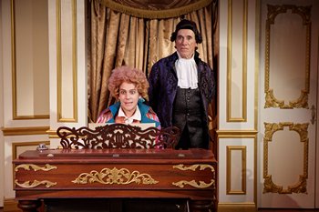 The story begins in a Vienna mental institution in November 1823, with Antonio Salieri (Tony Amendola) telling his visitors (the audience) that he murdered his legendary rival, Wolfgang Amadeus Mozart (Rafael Goldstein). The narrative soon shifts back in time to 1781, when Salieri is the court composer to Emperor Joseph II (Louis Lotorto). While Salieri is deeply religious, his strong moral code starts eroding once Mozart becomes a bigger part of his life. Although Salieri is in awe of Mozart's music and talent, he hates the younger man's immature and raunchy attitude and, consumed with jealousy and dislike, decides to destroy him and his career. Audiences do have to pay close attention to Shaffer's dialogue, as the relationship between Mozart and Salieri is a complicated and nuanced one. Salieri's schemes are not always intuitively obvious or easily grasped. Shaffer deals with the story's dark aspects in a fascinating and, yes, enjoyable manner. The tale is inherently bleak, but there are so many interesting characters, so much ironic humor and compelling dialogue that theatregoers will leave the theatre invigorated by the interpretation. Having a strong director is always invaluable, and director Richard Baird doesn't disappoint in this department. Baird depicts Vienna with a grand atmosphere that is fitting for this three-hour tale. His direction ranges from some scenes that cause uproarious laughter from the audience to others that are so intimate you could practically hear a pin drop. The work from his crew is just as effective, with Elisa Benzoni's costumes, Peter Herman's hair and wig design, and Marty Burnett's set presenting a Vienna that's sophisticated and beautiful. Additionally, Matt Novotny's lighting is visually distinct during Salieri's monologues, and Aaron Rumley's audio uses famous melodies from Mozart that tie into the plot. Besides the strong work from his crew, Baird gets intelligent performances from the cast. Amendola plays Salieri in a reserved manner for a good portion of act one, until Salieri starts to demonstrate his obsessively jealous nature, depicting a gradual decline in a haunting way. Goldstein portrays Mozart as both an obnoxious sex-loving character and a smart and rebellious artist. His performance is moving in a subplot that involves Mozart and his unseen father, Leopold. There are memorable turns as well from Kathryn Tkel as Mozart's supportive-to-a-point wife Constanze Weber, Lotorto as the clueless Joseph II, and Nick Kennedy and Andrew Oswald as the narrow-minded counts, Johann Kilian Von Strack and Orsini-Rosenberg. Each of the players is given a fair share of standout moments. North Coast Rep's 38th season is off to an excellent start and Baird's rendition is first-rate historical drama. Amadeus runs through October 6, 2019, at North Coast Repertory Theatre, 987 Lomas Santa Fe Drive, Suite D, Solana Beach CA. Tickets start at $49.00 and can be purchased online at www.northcoastrep.org or by phone at 858-481-1055. |