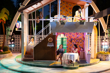 Tradition has it that Queen Elizabeth I asked Shakespeare to write a play featuring Falstaff in love, after seeing Falstaff featured in both parts of Henry IV. Shakespeare obliged by making Falstaff down on his luck and vowing to remedy his situation by wooing two suburban housewives, Mrs. Ford (Angela Pierce) and Mrs. Page (Ruibo Qian). These women have husbands, Ford (Dion Mucciacito) and Page (Cornell Womack), and that fact adds to the women's glee in pranking Sir John. The Pages also have a daughter, Anne (Camilla Hsieh), and she has several suiters: Dr. Caius (Jesse J. Perez), who is the choice of Ann's mother; Master Slender (Jeffrey Rashad), who is Anne's father's choice; and Master Fenton (Jose Balistrieri), who is Anne's choice. Complicating things even further is a parson, Sir Hugh Evans (Matt McGrath), who sides with Slender and tries to enlist Dr. Caius' servant, Mrs. Quickly, to help with Slender's cause. Director James Vásquez has made suburban Windsor into 1950s suburban Southern California; doing so allows for a colorful rotating set (designed by Diggle) that allows the players to scamper about without the need for farcical slamming doors. The set is lit by Mextly Couzin. Lex Liang designed the colorful costumes, and Melanie Chen Cole designed the excellent sound. Mr. Vásquez has coached fine performances from his cast. In particular, Mr. Perez, the head of the Globe/USD acting program, has much fun with the French Dr. Caius, and Mr. Balistrieri shows off a kind of "Happy Days" head of slicked-back hair as Fenton. Mr. McGowan's Falstaff is a good sport, as he gets hidden more than once and dumped in water in one instance. The cast was hitting its marks on opening night, but I missed the kind of ensemble feeling that I'm certain will emerge with more performances. There was an emergency outside of the theater, and perhaps attention was diverted by the running motor of a fire truck that came in response. Overall, though, The Globe looks to have a hit on its hands. Cast members not mentioned in the review are: Luana Fontes as Bobbie, Madeline Grace Jones as Pistol, Sarah Joyce as Bardolph, Becca Lustgarten as Shallow, Carter Piggee as Robin, Bernadette Sefic as Nym, Vandous Stripling II as John, Emma Svitil as Simple, Jude Tibeau as Ensemble, Michael Underhill as Rugby, and Maggie Walters as Hostess. The Merry Wives of Windsor runs through September 3, 2023, at The Old Globe, Lowell Davies Festival Theatre, 1363 Old Globe Way, San Diego CA. For tickets and information, please visit theoldglobe.org or call 619-234-5623. |