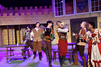 We are introduced to Sabine (Anne Norland), D'Artagnan's sister, who is supposed to be going to Paris to attend a convent school. She spends most of her time hanging with the Musketeers, posing as a man. Sabine is intertwined in the adventures of D'Artagnan (Jonah Robinson) and the oddball MusketeersAthos (Patrick Russell), Porthos (Jackson Currier), and Aramis (Dean Linnard)protectors of King Louis (Richard Pallaziol) and the Queen (Anna Joham). In the opening scenes, D'Artagnan shows an impetuous bravado that constantly gets him in trouble, and he has provoked and scheduled duels an hour apart with all three Musketeers. He confides to the audience, "I'm as good as dead." Fortunately, he then joins the Musketeers in their escapades against the evil Cardinal Richelieu (Rod Gnapp) and treacherous Milady (Elena Wright). Jonah Robinson, making an impressive debut on the Marin Shakespeare stage, plays D'Artagnan with just the right amount of boyish enthusiasm and perception beyond his years. He has a fresh-faced robustness and sparkling energy. His entrance on a rope high above the audience is awesome. Porthos is played by perfectly chill Jackson Currier with tempting levity. Dean Linnard is excellent as bible reading Aramis and he has a flaming sex appeal that has Sabine, played by Anne Norland, admirably hanging on every word. Norland is spectacular in her role. Patrick Russell as Athos gives a striking portrayal of a world-weary man who has felt the sting of unfaithfulness. Rod Gnapp with his distinguished voice is outstanding in the role of the haughty, cruel Cardinal Richelieu; he and Elena Wright as the devious Milady are villains we love to hate. Luisa Frasconi is sweet and loyal as Constance and Nick Mandracchia is perfect as the unscrupulous Rochefort. Richard Pallaziol brilliantly plays King Louis, plus the mother superior and D'Artagnan's father and he is also an amazing fight director. He dazzlingly plays the king as a foolish fop. Anne Joham wonderfully plays the Queen and D'Artagnan's mother. Ariel Zuckerman plays many roles, including Buckingham, splendidly. The large supporting cast of Jenna Beressi, Mark Cooper, Caylyn Creager, Julia James, Nathan Kastle, Marika Kuzma, Shadi Moeini Nejad, Christian Nikolov, Molly O'Brien, and Courtney Peck give first rate performances. Robert S. Currier brilliantly directs this fast-paced production. Richard Pallaziol's fight and sword play is the best I've seen in a long time. The remarkably detailed set design is by Jackson Currier. Ravishing costumes by Tammy Berlin, rousing music by Clint Bajakian, and a few running gags make this a satisfying festive treat. I had a ball. The Three Musketeers runs through August 27, 2017, at Forest Meadows Amphitheatre at Dominican University of California, 890 Belle Ave, San Rafael. For tickets call 415-499-4488 or visit www.marinshakespeare.org. Their concluding summer production will be William Shakespeare's witty Love's Labour's Lost running September 1 through September 24. |