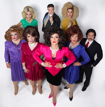 Bitch Slap centers around Diana Midnight (D'Arcy Drollinger) and her fashion empire, as she struggles to maintain power and desperately keep control of her prized possessionthe patent for shoulder pads. There is a lot of adultery, blackmail, confessions, amnesia, divorce, evil twins, seduction, catfights, and shoulder pads involved and a hell of a lot of bitch slapping. I will not attempt to present you with a plot, as it goes all over the place. It's a put-on of such soap operas as the "As the World Turns," "The Days of Our Lives," "Dynasty," and "María la del Barrio." Drag royalty D'Arcy Drollinger, Katya Smirnoff-Skyy, Matthew Martin, Jef Valentine, and Crissy Fields star in this uninhabited production, and they are fab-u-lous. With Leigh Crow, Nancy French, Manuel Caneri, and Sergio Lobito, the whole cast is hilarious. Steven Lemay is screamingly funny as daughter Portia and Adam Roy with his rubbery face is sidesplittingly comical in every role he takes on. He is part Jerry Lewis with Red Skelton thrown in for good measure. Bitch Slap plays through September 9, 2017, at Oasis Club, 258 Eleventh Street at Folsom, San Francisco. For a full lineup at the club and for tickets go to www.sfoasis.com. |