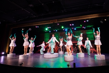 The stage version closely follows the Warner Brothers movie. It's a backstage fairytale. Producer Julian Marsh (DC Scarpelli) is producing the musical Pretty Lady for Broadway. He has hired temperamental star Dorothy Brock (Laurie Strawn) as the lead. Peggy Sawyer (Samantha Rose), a wet-behind-theĀears young hoofer, gets her first job in this Broadway chorus. Romance blooms between Peggy and Billy Lawlor (Nikita Burshteyn), a member of the chorus. Dorothy Brock breaks her ankle and Peggy Sawyer takes over. She has 36 hours to learn six songs, 10 dances, and 25 pages of dialogue in time for the New York opening. Julian Marsh says the now famous line: "You're going out a youngster, but you're coming back a star." Michael Stewart and Mark Bramble's book is full of wisecracks and bitter, sharp one-liners, for instance in a scene at a restaurant where four chorus girls are seated at a table and one of them tells the waiter, "Five cups of boiling water, one tea bag"" or when Peggy has been rehearsing 12 straight hours for the title role and the director says, "I'll either have a live leading lady or a dead chorus girl." Matthew McCoy has created the choreography for some spectacular precision tap dancing. What keeps the show alive are the dances and the singers. You're in for a treat with such numbers as "We're in the Money," with the chorus tapping furiously on drum-shaped nickels and dimes, "Dames," and "Shadow Waltz." The dancers dance their tuchises off on "Lullaby of Broadway." "Shuffle Off to Buffalo" shows the talented John Brown as a misbehaving groom and Marisa Cozart as his bride providing welcome comic relief. Samantha Rose as Peggy Sawyer is beguiling. She has pitch perfect vocal cords and is marvelous in the tap dancing routines. Nikita Burshteyn is fantastic as Billy Lawlor, has superb vocal cords, and is awesome on the tap dances. DC Scarpelli rocks out "Lullaby of Broadway" with his powerful voice. The whole cast is outstanding, including Marisa Cozart, John Brown, Venis Goodman, Zac Padlo, Peter Budinger, Kevin Singer, John Charles Quimpo, Janet Wiggins, Hilary McQuaide, Catrina Manahan and Danielle Cheiken. Daren A.C. Carollo directs the production with the large tap-dancing chorus filling the stage in glittering costumes provided by designer Brooke Jennings. Jon Gallo nicely leads the seven-piece orchestra. Bottom Line: 42nd Street is a glitzy specular musical. If you are in the mood for a tapping musical like the good old days, this is best bet. 42nd Street runs thorough December 10, 2017, at Bay Area Musicals, Alcazar Theatre, 601 Geary Street, San Francisco CA. For tickets and information, call 415-340-2207 or visit www.bamsf.org, Next up is The Wedding Singer, which runs February 17 through March 17, 2018. |