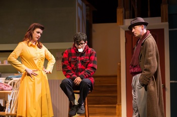 A Christmas Story faithfully follows the slender plotline of the popular 1993 MGM movie scene by scene. The plot centers on Ralphie Parker (Jonah Broscow) who wants a BB gun for Christmas. But first, he'll have to navigate a maniacal department store Santa, a now infamous leg lamp, a "triple dog dare," a tongue stuck on a frozen flagpole, and a mother (Abby Haug) who is afraid he will put his eye out with the BB gun. Director Susi Damilano has pulled out all the stops, with '40s-era costuming by Abra Berman fitting perfectly, on the mark stage design by Jacquelyn Scott and choreography by Kimberly Richards, and beautiful singing by a talented cast. It's fun to watch Ralphie work slyly along his path to the BB gun over two and a half hours with intermission. There are charming songs such as "Up on Santa's Lap" and "It All Comes Down to Christmas." Jonah Broscow shines as Ralphie Parker, expertly singing, dancing, and acting his way though. I was reminded of Peter Billingsley in the film version. Ryan Drummond and Abby Haug are outstanding as Ralphie's father and mother. Christopher Reber is the narrator (author Jean Shephard in the film) who holds things together with a charming and authoritative delivery to move the story along. As schoolteacher Miss Shields, Katrina Lauren McGraw gives an excellent performance. The adult ensemble is fantastic, called upon to be everything from parents to cowboys to Santa's elves. Their sense of play is at times amazing. The young ensemble holds their own against their more experienced adult counterparts, and Dave Dobrusky excellently leads a five-piece band. A Christmas Story, The Musical, through January 13, 2017, at San Francisco Playhouse, 450 Post Street (2nd floor of the Kensington Park Hotel), San Francisco CA. For tickets, call 415-677-9596 or visit www.sfplayhouse.org. The company's next production will be Garson Kanin's Born Yesterday. |