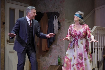 Such are the laughs that filled the theater on the opening night of Harold Pinter's The Birthday Party at American Conservatory Theater's Geary Theater. For Pinter was a genius at creating bubbles of nervous tension, bursting them with odd or confusing or seemingly insipid linesbut which often serve to reveal deeper, hidden layers of unease. The Birthday Party is one of Pinter's earliest plays, and its layers of unease are multitudinous. Nothing is quite as it seemsor is exactly as it seems, but Pinter never gives us the information we need to discern fact from falsehood. The action takes place in a British seaside resort town, in a downscale boardinghouse run by Meg (Judith Ivey) and Petey (Dan Hiatt). But is it really a boardinghouse? There's only one tenant (Stanley, played by Firdous Bamji), and while he claims it isn't a boardinghouse, Meg insists people come because it's "on the list." And are Meg and Petey really that simple? Their dialogue in the first scene is almost entirely composed of comments on things that are self-evident: "Are you back?" "You got your paper?" "Here's your cornflakes." "It gets light later in winter." Thanks to stellar performances from Hiatt and Ivey, this seemingly inane banter has an undeniable comic charm. But when Stanley appears (unshaven, in pajamas and a robe), and hears from Petey that two men inquired about rooms for let in the house, his reaction cranks the anxiety to a new level. Stanley deflects the tension back to Meg, frightening her with an invented (or is it? With Pinter, one never knows) tale of a mysterious "they," coming in a van, with a wheelbarrow. But when the two men (Goldberg, played with smiling menace by Scott Wentworth, and McCann, played by ACT regular Marco Barricelli) do arrive, Stanley signals his fear by slipping out a back door, unseen by the two men who menace. Very little happens, plot-wise, in The Birthday Party. Leaving the theater I overheard more than one patron ask "what was that about?" But this play, often described as a "comedy of menace"like much of Pinter's workisn't about what's happening on the surface. It's the subtext hidden beneath the meager plot and unreliable characters that provides the thrills, keeping you on edge for nearly two and a half hours. Carey Perloff's direction is crisp, and her castto a personis marvelous. Despite the almost minimalist nature of Pinter's dialogue, each exhibits a broad dynamic range of emotion, and expresses that emotion with subtle delicacy or broad physicality as required. Two-time Tony Award winner Judith Ivey is especially effective as Meg. As mistress of the house, the action seems to revolve around her, even when the action is not specifically about her character. The goofy rictus of a smile she has pasted on her face for much of the evening is infectious: from the moment she walk on stage, I could almost feel cheeks lifting and lips parting all around the theater. The other standout is Scott Wentworth as Goldberg. His performance offers a master class in cognitive dissonance: handsome and charming, with an ability to drop compliments in just the right places, belying a sense of peril that surrounds his character like a sickly, threatening cloud. Nina Ball's set provides a suitably dingy backdrop, with its low-rent furnishings and fixtures, stained surfaces, and hideousyet somehow restrainedwallpaper. It's the sort of place most people would want to immediately leave. But despite its wide-open nature, it somehow manages to still feel claustrophobic and confining. Laughter may be the best medicine, but Pinter has provided no spoonful of sugar to help you get it down. But that doesn't mean it's not just what the doctor ordered.,/p> The Birthday Party plays through February 4, 2018, at ACT's Geary Theater, 415 Geary Street, San Francisco. Performances are Tuesdays-Saturdays at 8:00pm, and Wednesdays, Saturdays and Sundays at 2:00pm. Tickets (ranging from $15-$110) and more information available at www.act-sf.org. |