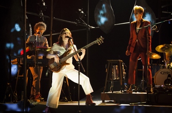 Local musicians The Kilbanes have mined this story (part of Ovid's Metamorphoses) to create a rock opera that, while softening somewhat the savagery of the original (no boiled babies!), retains a tragic mystery that is reflected in a haunting and powerfully rhythmic cycle of songs. Entitled Weightless, it is currently playing at Z Space in San Francisco, one of the City's most interesting and energizing theatrical spaces. In the almost-cavernous warehouse space, the set (by designer Angrette McCloskey) creates the feeling of going to an arena rock show where you've scored floor seating. A large raised stage is flanked by (sadly very uncomfortable) amphitheater-like seating and surrounded by several poles topped with arrays of lighting instruments. It is both operatic and intimate. Upstage are four large gourd-like elements that feel like a cross between bowling pins and the pods from which Spinal Tap failed to emerge in This is Spinal Tap. A wide ramp angles down from the stage front to the floor, creating a space where much of the action shouldbut fails totake place. Herein lies the biggest problem with Weightless. Despite the engaging, powerful, and oftentimes touching score, Weightless is more of a song cycle than a true opera (rock or otherwise) because of a paucity of dramatic action. The story of two sisters who are separated when one marries a king has theatrical potential aplenty, but director Becca Wolf has chosen to tell us the story rather than show it to us. There is plenty of story here, and plenty of space in which to tell it, but far too often the performers are held static, undercutting the inherent drama and emotion of sisters bound by love, but separated by lust. There is still a tremendously powerful show being presented here. The band (authors Kate Kilbane and Dan Moses, assisted by singer Lila Blue, drummer Dan Harris, and guitarist Josh Pollock, who sings the role of Tereus) is marvelous, filling Z Space with sounds that range from powerful angry ballads to heartsick, tragic blues like "Nightingale," hauntingly performed by Lila Blue. And when Josh Pollock sets down his guitar and joins Dan Harris, pounding a tom-tom with vicious beats from timpani mallets, the rhythms take on a primal feel that is most compelling. The performers are mostly excellent. Kate Kilbane's passion is evident in both her vocal performance and the imaginative and powerful bass lines she creates. Lila Blue is appropriately delicate and wounded as Philomela, but her voice can be a little thin when she needs to belt. Julia Brothers brings a wonderfully snarky appeal to her role as God, but adding a touch of menace to some of her line readings would add a level of dimension and gravitas to her character. This world premiere has been five years in the making (first appearing in a different form at the 2012 SF Fringe Festival), but would benefit in its next iteration from a more theatrical, dramatic staging, perhaps confining the band to playing the score, and allowing actors/singers to concentrate on the drama and the interactions with their fellow performers. Still, Weightless has an undeniable power and is well worth seeing, even in this flawed but fascinating first full incarnation. Weightless, through March 18, 2018, at Z Space, 450 Florida Street, San Francisco CA. Shows are Wednesdays at 7:00p.m., Thursdays, Fridays and Saturdays at 8:00 p.m., and Sundays at 2:00 p.m. Tickets are $10-$125 and are available online at www.ZSpace.org. (I recommend general admission tickets, as these mostly have backs and, while farther from the stage, have a direct view.) |