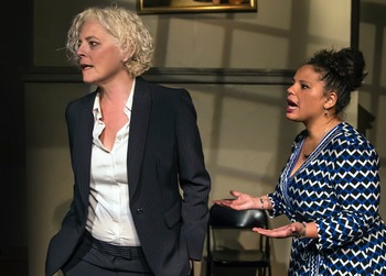 Since Abby is black (and Californian) and Opal Anne is white (and a member of the Daughters of the Confederacy) and the trial is scheduled to take place in Shelby County, Tennessee, the balance of power is tilted solidly against her. Fortunately for Abby (Jeunée Simon), she has a wolverine for an attorney, a publicity-mad woman named Rochelle (Stacy Ross), who believes there are ways outside the court to win inside the court. Abby also benefits from the assistance of Savannah (Chelsea Bearce), Rochelle's associate, whose law license has been suspended after she was arrested for dancing with another woman. Together, the three women plot a strategy, while each tries to discern the real motivations and actual truths of the other two. But once Opal Anne (Susan Jackson) appears at the end of act one, the motivations and power plays take on very different shadings, and it's no longer just Abby who's on trial. With a KKK rally going on outside (excellent sound design by Gregory Scharpen) and Opal Anne spouting confederate trigger phrases"heritage," "a traditionalist movement," "War of Northern Aggression," "field hands," (instead of "slaves")it's the idea (and ideals) of America being judged. Central Works is to be lauded for their mission of staging only new plays, giving playwrights a much needed forum in which to create their art. Despite a too-tidy, somewhat head-scratching ending, playwright Patricia Milton has done excellent work here, peppering her script with dozens of wonderful lines that elicited roars of laughter from the audience at the performance I attended. When Abby is asked "You don't have the Klan in California?," she replies, "We have the LAPD." Rochelle's alcoholic law partner (never seen on stage) was reported to have been "shoving quarters into the condom machine and wondering why it won't play 'Jolene'." Her characters are rich and complex, and you never stop trying to discern the shifting alliances and strategies the characters adopt to achieve their goals. Director Gary Graves has elicited absolutely marvelous performances from his cast. Stacy Ross, who was brilliant in two shows that made my Top 10 of 2017 (Shakespeare in Love and Leni), is equally spectacular in this role, exhibiting power, duplicity, passion and fragilityin just the right proportions. It's an absolute delight to observe her work in such an intimate setting. For that matter, the other three actors also shine in the tiny space that is the theater at Berkeley City Club, on its own worth a visit for the gorgeous Julia Morgan architecture. Jeunée Simon has eyes that will tear a hole in your heart, and expresses both sensitivity and sassalong with a fierce intelligence that comes pouring out of her character when she is challenged by those around her. Chelsea Bearce also brings a ferocity to her role as a woman wrongly detoured from her career path and forced into a job that doesn't come close to matching her talents, in a way mirroring the untapped potential slavery engendered. As Opal Anne, Susan Jackson is wonderfully haughty and blind to her bigotry in a way that makes us feel both fondness and pity for her. The major blot on this production is the set "design." No scenic designer is listed in the program, which is clearly evident. The setostensibly a conference room of a two-partner law firmconsists of a plastic folding banquet table (of the sort one might find in a junior high school cafeteria), set with four black metal folding chairs. Bamboozled will take you on a fascinating journey, exploring the stains history has left on us all, and the lengths some will go to hide those stains, and others to expose and scrub them away. Bamboozled, through March 18, 2018, at Berkeley City Club, 2315 Durant Avenue, Berkeley CA. Shows are Thursdays, Fridays and Saturdays at 8:00 p.m., and Sundays at 5:00 p.m. Tickets range from $30-$35, with a sliding scale of $15-$35 available at the door. Tickets are available online at www.centralworks.org, or by calling 510-558-1381. |