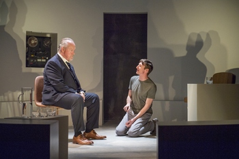 But scratch a little beneath the surface, and Caryl Churchill's 2002 play is just as much an exploration of the perils of nostalgia. Salter (an appropriately conflicted Paul Vincent O'Connor), the father of Bernard (Joseph Patrick O'Malley)and, it follows, of all the clonesis seeking to reinvent the past, to start over with a new Bernard in order to expiate his guilt over having not done a very good job in raising the first Bernard. The question here is just as much "can you hit rewind on existence?" as it is "are we defined more by nature or by nurture?" This 55-minute two-hander roars unrelentingly through its subject matter, exploring both the insecurities of the men who discover there are an unknown number of beings walking the globe who are genetically identical to them. Salter, their "father," seems empathetic to their plight: "Walk around the corner and see yourself? You could get a heart attack. Because if that's me over there, who am I?" But he's also angry at the scientists who stole his son's DNA to make multiple clones, regularly threatening to sue. "They've damaged your uniqueness," he says. But have they? Even with clones, small differencesin the environment in which they were raised, the food they ate, the activities they engaged inwill all ultimately individualize each of the "reproductions." Fittingly, the three clones Churchill presentsthe original Bernard, plus a Bernard 2 and a Michael Blackpresent as very different personalities. It's almost as if they are working through a variant of Elisabeth Kübler-Ross's stages of grief: Bernard 2 in denial and depression, Bernard 1 in anger and bargaining, and Michael Black having achieved acceptance. Both actors deliver wonderfully moving and insightful performances. Joseph Patrick O'Malley does marvelous work playing each of the three clones so that we in the audience can both sense the differences between them and better understand the issues Churchill raises in her text. His Bernard 1 is delightfully twitchy and anxious, and O'Malley gives him a revealing bit of physical business when he takes a glass and repeatedly lifts it and sets it down, with a slight twisting motion each time, as though it were a cookie cutter. Paul Vincent O'Connor plays Salter as a tremendously conflicted figure, filled with both regret and optimism. Salter failed as a father, but his attempts to rewrite history only end in more tragedy, and the cumulative effect of these errors are evident in O'Connor's careworn expressions. Despite the excellence of the performances (on a starkly lovely set by Michael Locher) and the skilled direction from Barbara Damashek, A Number is ultimately too chilly to be satisfying emotionally, and too shallow to be intellectually compelling. It's another excellent production from a talented team, but the source material sadly fails to engage. A Number, through May 6, 2018, at Harry's Upstage at the Aurora Theatre Company, 2081 Addison Street, Berkeley CA. Shows are Tuesdays-Wednesdays at 7:00 p.m., Thursdays-Saturdays at 8:00 p.m., and Sundays at 2:00 p.m. and 7:00p.m. Tickets are $33-$65. Tickets and additional information are available at www.auroratheatre.org or by calling 510-843-4822. |