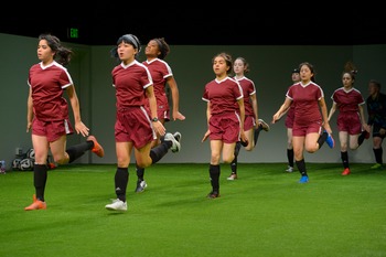 We meet the Wolves as they sit in a big circle, stretching before a game. (The action takes place in an indoor soccer facility, which scenic designer Kristen Robinson indicates by carpeting the entire Marin Theatre Company stage with green indoor/outdoor carpet and hanging large HID lighting fixtures.) While stretching, the girls' discussion is animated, almost manic, stretching over a range of topics, but ultimately settling on the atrocities of Pol Pot and the Khmer Rouge. At times the sound becomes cacophonous and often unintelligible, as the girls talk over each other, dyads and triads of conversation merging and diverging. It brings tremendous energy to the stage, but interferes with the forward motion of the story. There's a lot going on in their young lives: sexual awakening, eating disorders, very real fears about the terrors of the wider world, a nostalgic longing for their pre-teen years, the intricacies of friendships and popularity, and the pressure to perform in order to score both goals and athletic scholarships. DeLappe's dialogue is marvelously naturalistic, even if much of it is lost in a haze of crosstalk. We never lose sight of the fact, with each "um" and "like," that these are teenagers still discovering themselves and their relationships with each other and the rest of the world. (Later in the run, MTC will present an alternate cast of young performers from local high schools, and I think it would be fascinating to see girls who are actually the age of their characters and closer to the pressures faced by the characters they play.) But the story DeLappe constructs for her characterslike a promising attack from mid-field that mysteriously falls apart due to an errant pass or missed touchnever fully develops. The tragedy that has befallen the team in the last scene seems to come out of left field (to mix a sports metaphor), with little to no foreshadowing, and character arcs established early on remain unresolved. What DeLappe has done exceptionally well, however, is to ensure that her charactersdespite their youth and vulnerabilitynever come across as weak, powerless, or anything less than fully engaged in both their current tasks and long term goals. Girl power, both emotional and physical, is on full display here. The physical aspect is thrilling to watch, especially in a scene in which the girls participate in a warm-up drill done in perfect unison. Despite solid performances from the cast, brisk direction from Morgan Green, and a fascinating microcosm of teen athletics, the chaos of The Wolves fails to resolve in a goal. The passion is there, but the opportunity evaporates before the ball can even be struck toward the back of the net. The Wolves, through April 8, 2018, at Marin Theatre Company, 397 Miller Avenue, Mill Valley CA. Performances Tuesdays-Sundays at 7:30pm, with matinees Thursday, March 29 at 1:00pm, Saturday, March 24 and April 7, and Sunday March 25, and April 1 and 8 at 2:00pm. Tickets range from $22-$60, and are available at marintheatre.org, or by calling the box office at 415-388-5208. |