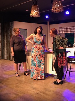 Thoughtful Mary (Shannon Rider) and practical Jo (Sandra Ish) lament that they have missed their mutual best friend Liz (Angela Squire) because of her preoccupation with her new boyfriend. The three divorcees have supported each other through thick and thin, marriages and divorces, and more. When Liz shows up at Chardonnay Tuesday with Jackson (Richard Pallaziol) in tow, she's showing him off and maybe hoping to incite a little jealousy. After all, he's a dentist with a thriving practice, and the sex has never been better. Liz gloats, "I'm experiencing a Renaissance of my nether parts." But Jackson has a creep factor, with a voice like Hannibal Lecter's and a knack for inappropriate, ghoulish remarks, and Mary and Jo are a little alarmed for their friend. When information surfaces that suggests he might also be a serial killer, they move into high gear to intervene and save Liz. The disappearance of Jackson's pretty dental hygienist raises concerns, especially when he seems less than worried, despite Liz's assertions to the contrary. Police are investigating, but Liz still seems fine with Jackson taking her buxom teen daughter Amanda (Victoria Saitz) on a "father-daughter" camping trip. Red flags pile up and Mary and Jo plot ways to abort the campout and open Liz's eyes to the obvious truth about Jackson. They rush to the police to report their suspicions to Sergeant Kirk, who bears an uncanny resemblance to Jackson (also played, of course, by Pallaziol). Kirk's sweetly awkward flirtation with Mary adds another complication. Mary further enlists the aid of Amanda's erstwhile boyfriend Trenner (Zane Walters), a sincere goofball with aspirations of his own, including a fantasy that might involve Mary. The hijinks ensue, the complications deepen, and the laughs triple. Move all those eagerly mistaken characters into the woods and watch the fur fly. The script suffers from a rather abrupt resolution, but by that time you don't really care, and friendship prevails, as it should. Nothing earth-shattering, but a lot of fun and a little heart for good measure. The actors are clearly comfortable with their characters and each other, supporting the laughs with excellent comic timing and physicality. Rider, Ish, and Squire make a great trio of utterly believable women friends "of a certain age." Pallaziol has delicious fun with his two look-alike but quite opposite characters. Saitz gets to move Amanda from teenage biatch to sympathetic young woman. Walters is a standout as Trenner, with gawky bravado and cougar fantasies. Argo Thompson's set design goes from modern kitchen to ski shop to police station and finally deep forest with minimal changes and clever set pieces, and employs a lovely backdrop throughout. April George's lighting and Sandra Ish's costumes thoroughly complement the scenic design and the characters. Sound design by Carla Spindt and Thompson provides comic commentary on the scenes and gets numerous laughs on its own. Director Spindt keeps the staging lively, pulling out all the stops to set up the laughs and sight gags. Give yourself an evening of laughter with this fun-filled script and playful cast. Women in Jeopardy, through May 27, 2018, at Left Edge Theatre's Studio Theater, Luther Burbank Center for the Arts, 50 Mark West Springs Rd., Santa Rosa CA. Tickets $25.00-$40.00 can be purchased online at www.leftedgetheatre.com or by phone at 707-546-3600. |