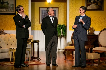 Foolish and fun-loving Bertie Wooster (Delaney Brummè) relies on Jeeves (Randy St. Jean) to get him out of his many scrapes and pickles, and in fact, Jeeves' ability to resolve difficult situations has become legendary with Wooster's friends. When Eustace Bassington-Bassington (Nick Moore) shows up with a desperate plea, it's Jeeves' advice he seeks. Bassy's Uncle Rupert (Larry Williams), a frugal Scotsman whose allowance gives Bassy the easy life, is threatening to send him to India, to make him into a man and start him on a career in the jute business. Furthermore, he intends to visit London to make sure Bassy gets on the boat. Meanwhile, Bertie has problems of his own, as Aunt Agatha (Jennie Brick) is determined to marry Bertie off to a promising young protegé, Gertrude (Libby Oberlin). She's hoping Gertrude will mold Bertie into a proper gentleman and quash his foolish, wastrel tendencies. Agatha, as is often said in colorful metaphors, is a force to be reckoned with, and Bertie is desperate to escape her latest marriage plot. His dependence on her monetary support notwithstanding, he can't stand the thought of going through life as "Bertie and Gertie." Jeeves naturally comes up with schemes to save both Bertie and Bassy, while also saving face for Sir Rupert and Lady Agatha, and providing compensation for Gertrude in the bargain. He seemingly knows everything about everyone, and is able to maneuver situations even when they seem like disasters. But along the way there are disguises, mistaken identities, switched places, and hilarious hijinks. One minute all is lost, and the next Jeeves has saved the daywe hope! The dinner party (will the soup ever be served?) brings all to a climax and determines the future of our young devil-may-care hero. St. Jean is delightfully droll as the clever, long-suffering Jeeves. He strikes the right notes, with just enough restrained eye-rolling and barely disguised sarcasm, and his physical restraint is quite proper. Moore's Bassy lolls about with an upper-class air that suggests an amusing distaste for actual workwe can't possibly imagine this young man in the jute business. His posh accent lends believability to his dreamy character and over-the-top antics. Oberlin captures Gertrude nicely with gesture and pose, setting up her marriage quest and bid as "future Agatha." Williams struggles with his Scottish accent but otherwise does all right with Sir Rupert's snobbery. Brummè is the right type for Bertie, but suffers a vocal choice that makes him sound like a 12-year-old whose voice is changing. The squeaking might work as an occasional comic device, but persistently used becomes annoying, and often interferes with understanding. Brick's Agatha needs more gravitas for her role as the imperious dame, and more chemistry between her and Rupert. Different costume choices for her might have helped. Slightly sloppy antics and a few odd production choices mar the show's overall presentation, but the clever script and some congenial performances save the day, not unlike Jeeves himself. Jeeves Intervenes, through May 27, 2018, at Sonoma Arts Live, Sonoma Community Center, 276 East Napa St, Sonoma CA. Tickets $22.00-$37.00 can be purchased online at www.sonomaartslive.org or by phone at 866-710-8942. |