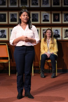 Not that there's anything wrong with that. Personally, I appreciate an enlightening discourse on a fascinating subjectwhich the Constitution most certainly is. But a lecture is not theatre. And though playwright/performer Heidi Schreck does attempt to wrap her deep knowledge of our founding document in a theatrical fabric, the seams show, the structure is unstable, and the piece ultimately unravels in a tangle of connected but disorganized threads. Schreck slips into and out of character over the course of the 90-minute, no intermission evening. However, since the character she plays is her 15-year old self, but with no change in voice or mannerisms, and with heradmittedaddition of a 40-something woman's wisdom, there doesn't seem to be much of a difference. There also doesn't seem to be much of a narrative structure. Schreck sets up the piece as taking place in an American Legion hall during one of the Legion's Oratorical Contests, in which Schreck participated (with great success, she reports). Rachel Hauck's set establishes the scene nicely, with an array of photos of men in uniform filling virtually every bit of wall space. The point of these contests, according to the Legion, is to "develop deeper knowledge and appreciation for the U.S. Constitution among high school students." Students give prepared remarks on different aspects of the Constitution and are also asked to speak extemporaneously on one or more specific amendments. And this is pretty much exactly what Schreck does. An actor playing a Legion official (Danny Wolohan, who will later in the show perform as himself) gets the oration under way, but most of the stage time is spent with Schreck delivering both her prepared speech and extemporizing on the 9th and 14th Amendments, with detours into the histories of women in her family and how the Constitution affected their lives. The problems here are many. No single one brings down this production, but in combination they are fatal. There is great drama inherent in the desires and dreams of youth. But since Schreck plays her youthful self as a wise adult, the drama is undercut. The delivery of her speech seems designed for the Berkeley Rep audience, not the Legionnaires who would have been judging her performance as a teen, and this pulls us out of a milieu that would have been fraught with anxiety and drama for the youthful Schreck. Late in the show, Schreck is joined onstage by a local high school debater who is representative of her younger self, but who engages in an onstage oration contest that is improvised to a certain extent. It was wonderful to see the passion and intelligence of the teen debater, Wisdom Kunitz, but it failed to overcome a fatal lack of narrative drive and dramatic tension. What the Constitution Means to Me, through June 17, 2018, in the Peet's Theatre at Berkeley Repertory Theatre, 2025 Addison Street, Berkeley CA. Shows are Tuesday, Thursday, Friday and Saturday at 8:00 p.m., Wednesday and Sunday at 7:00 p.m., and 2:00 p.m. Saturday and Sunday. Tickets from $45-$97, with discounts available for students, seniors, and groups. Tickets are available online at www.berkeleyrep.org, or by calling the box office at (510) 647-2949. |