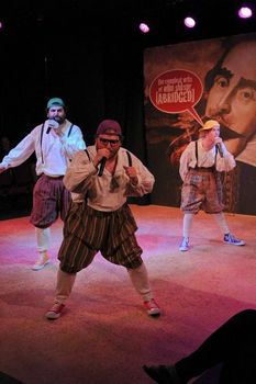 Actors Nick Mandracchia, Zac Schuman and Erik Weiss give tremendous energy and zeal to their performances, summoning a tongue-in-cheek delivery for this wacky script. The text encourages the performers to ad-lib and add contemporary cultural references, as well as relate directly to the audience, and it's clear they've liberally "dosed" the script with local color and added remarks. These are fun when they aren't too snide. However, there's far too much shouting, in this very small theatre, which tends to erode expression and blast the audience into numbness. Some shouting is called for in the script, but that doesn't mean the entire work is to be delivered at top volume. The slapstick is often over-exaggerated and, combined with shouting, results in a failure to land the jokes and more subtle comic timing. Sight-gags and physical comedy are critical to the piece, of course, but precision and design would enhance understanding and get the desired laughs. The breakneck speed called for by the script needs care when speaking Shakespeare (or pseudo-Shakespeare), or all comprehension is forfeited. This isn't to say that nothing is funny in this productionsome of it is enjoyable, and the three performers are likable. It's just that too much comic opportunity is lost. There's an attractive backdrop by set designer Conor Woods, and some clever lighting by April George. Props masters Ben Harper and Erik Weiss and wig designer Roxie Johnson have a field day with this one. Unfortunately, it's not as wildly funny as one hoped. The Compleat Wrks of Wllm Shkspr (Abridged), through June 3, 2018, in the Studio Theatre, 6th Street Playhouse, 52 West 6th Street, Santa Rosa CA. Tickets $22.00-$35.00 can be purchased online at www.6thstreetplayhouse.com or by phone at 707-523-4185 ext. 1 |