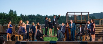 Classics like "Blue Skies" get the Transcendence treatment, meaning updated arrangements and clever staging infused with dance and showcasing the polished talents of one or more performers. The next number might be a well-known song from musical theatre, like "Cabaret" (featuring repeat favorite Leslie McDonel), or a popular hit, like Justin Timberlake's infectious "Can't Stop the Feeling" (in a standout rendition by the men, showcasing their superb voices and dance skills). Sprinkled in are lesser-known numbers that deserve airing, like the delightful "A Little Bit," from Crazy, Just Like Me (performed by Michael Linden), or the funny "Air Conditioner," by Christine Lavin (made hilarious by Shaleah Adkisson, with assistance from Tim Roller). There are some wonderful surprises that I won't spoil, including the premiere of a new song, new lyrics to a classic, and a wacky version of a TV game show. A delectable sense of humor runs throughout, balancing the serious with the comic. You'll never hear Van Halen's "Right Now" in a more stirring version, or a sweeter rendition of "Edelweiss" (by Joey Khoury and Libby Servais). Meggie Cansler Ness is up to her comedic tricks in "As We Stumble Along," while Courtney Markowitz and Steven Cutts share a sobering duet of "Carefully Taught" and "Children Will Listen." Somber or playful, it all brings home the theme of "Every moment counts," a phrase that could sound like YOLO, but also takes us another step forward in communal healing after the devastation of last October. Kudos to Gonzalez and his team, including his associates Julia Freyer and Tim Roller, and music director Matt Smart and his associate Loclan Mackenzie-Spencer. Ariel Allen's costume design creates an artful palette, stylish and colorful, and sound design by Nils Erickson is mostly effectiveit's a tricky venue for balancing the band with the vocals. Jeffrey Porter deserves mention for beautiful lighting effects that we don't really get to enjoy until act two. Artistic director Amy Miller and executive directors Brad Surosky and Stephan Stubbins are on hand to emcee the festivities. It's a class act all around, with professionals both local and imported, with the feel of a production grown on Sonoma soil, paying tribute to its chosen home. Arrive early to enjoy the festive ambience Transcendence creates in Jack London Park, but don't forget to bring warm layersit's an outdoor venue, and can get chilly after the sun goes down. The stated mission of the company goes beyond creating a fabulous entertainment, aiming to enrich a community with inspiration, goodwill, and the charge to live life to its fullest with energy and passion. Let fear be replaced by joy, live appreciating each moment, and count your blessings. It may sound sappy, but the atmosphere generated in two hours bears witness to a heightened sense of purpose and motivation. It's hard to resist the positive message, and, why would you? Let yourself be nourished and energized by this spectacular production and carry the warm feelings into the parking lot and out into the world. Stairway to Paradise, through July 1, 2018, by Transcendence Theatre Company at Jack London National Park, 2400 London Ranch Rd., Glen Ellen CA. Tickets $49.00-$145.00 can be purchased online at https://transcendencetheatre.org or by phone at 877-424-1414, ext. 1. |