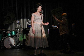 Kudos to director Michael Ross for casting Danielle DeBow to play Cline. A favorite on local stages, DeBow clearly has done her homework in bringing this country legend to life. Of course no one will be exactly like Cline, but that's okayDeBow captures enough of the signature vocal inflections and the demeanor to evoke admiration and awaken cherished memories. Audible sighs of appreciation from the audience when she launched into Cline's hits such as "Walkin' After Midnight" or "I Fall to Pieces" gave evidence of sincere gratitude for the skillful song renditions. DeBow's version of "Crazy" generated obvious approval and thankful applause both before and after. There are over 25 songs in the show, covering nearly all of Cline's chart-topping hitsa veritable feast for her fans. Karen Pinomaki is equally delightful in the characterization of Louise Seger, whose reminiscences about her longtime friendship with Cline form the basis for the tribute. Pinomaki has a lot of fun dancing and joking her way through the role, providing much of the comedic counterpoint and virtually all of the narrative. Swindley's script chooses to speak through Louise's memories, rather than creating imagined dialogue for Cline. At times this seems like a device that distances, but overall it makes sense, maintaining an aura of mystery and melancholy for the esteemed star. DeBow mostly performs on stage, with a four-man backup group (Cline often performed with Elvis Presley's backup group, "The Jordanaires") and a fine six-piece band headed by keyboardist Ellen Patterson. While both are excellent, the quartet and band make a formidable sound, and sound designer Jess Johnson could boost DeBow's miking a notch to compensate. There's an unusual thrust stage configuration for this show, with audience on three sides instead of all facing front. For a few numbers, when Cline is visiting Louise, she sings from a far downstage position. It brings her up close and personal, but also means seeing her from behind a fair amount as she turns to face another audience section. The staging encourages audience interaction with Louise in particular, and gives Cline a break from being on stagethe trade-off being that watching the onstage action from the side is awkward, requiring craning one's neck for long intervals. Costumes by Ross and wigs by The Wig Guys are wonderful period pieces, truly conjuring the late 1950s and early '60s, and closely imitating Cline's ground-breaking style, including her gold lamé pants. Courtney Johnson's lighting design works wonders with the varying stage positions and memory scenes. Ross and Theo Bridant have nicely put together the clean, minimal scenic design, and Sharon Grgich together with Jaime Love gathered the requisite period props. This is a show that comes together beautifully, but would fall flat if the two leads didn't match up to the quality behind them. Thankfully, DeBow's sterling recreation of icon Patsy Cline and Pinomaki's charming characterization of Louise are thoroughly enjoyable, and very satisfying, indeed. Always...Patsy Cline, through July 29, 2018, at Sonoma Arts Live, Sonoma Community Center, 276 East Napa St., Sonoma CA. Tickets $22.00-$37.00 can be purchased online at http://www.sonomaartslive.org or by phone at 866-710-8942 |