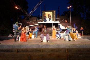 Here goes the plot: prince Pericles (played by the impressive Dameion Brown), having recently become the ruler of Tyre due to his father's death, attempts to win the hand of a princess by solving an impossible riddle; but upon realizing that she's involved in an incestuous relationship with her father Antiochus (Nick Mandracchia), he skips town. Back home, Pericles admits to his loyal major-domo Helicanus (Rod Gnapp) that he fears retribution from Antiochus. Solution: leave the country in the capable hands of Helicanus while he sails the world for 12 months. This sets up a series of events, including helping out the sad people of Tarsus, then a shipwreck that lands Pericles alone on a foreign isle where he marries Thaisa (Kathryn Smith-McGlynn). Thaisa gets pregnant, they board ship to continue his journey, she dies in childbirth during another sea storm, the baby is named Marina for her watery birth, and she is left in Tarsus to be raised by the king and queen there because, well, they owe him ... And that's about all I can tell you without giving away too much. This production does an excellent job of making the plot shifts and complexities clear, so the audience can follow the action and appreciate all that Pericles and his family must endure. But in true melodrama fashion, good ultimately conquers evil, and the last few scenes are both touching and satisfying. Brown as Pericles is a force to be reckoned with, showing the strength of character that must enable his survival of so much adversity. He transitions well from the young, brash prince to the mature and respected leader, sobered by his hardships. Brown is ably supported by a wonderful ensemble. Gnapp stands out as the faithful Helicanus and as the rowdy, hilarious Boult. Jackson Currier shines as Lysimachus, among others, and Mandracchia shows off his Shakespearean skills in several roles. Richard Pallaziol has fun with nasty Cleon, along with Cathleen Riddley who plays his even nastier wife Dionyza. Riddley also excels as Queen Simonides and a merciful goddess Diana. Smith-McGlynn is terrific in her very different roles, as is Elena Wright, barely recognizable in her differing characters. Eliza Boivin is a superb Marinasweet and pure, with an angelic voice, but also tough and smart. Her scene with Pericles is quite lovely. Narrator Gower, played by Diane Wasnak, prances and mimes while explaining it all, and provides some comic relief. The overall level of energy and skills of the entire cast adds greatly to the show's enjoyment. According to director Lesley Schisgall Currier, there are nearly 100 costumes in the show, and as designed and deployed by designer Merissa Mann, they add immensely to the visual character of the production, and aid audience in quickly adapting to new locations and roles. Mann also supplies some comic touches of her own that are well played. Scenic design by Jackson Currier allows for the many different locations with minimal set pieces and props, which helps to keep the action lively and speeding along. Pericles is not often staged, due to its particular challenges. This is as good a production of it as this reviewer has seen, with lots of talent on stage and a true understanding of the play itself. Kudos to Currier and her team for a thoroughly delightful show. Pericles, through August 5, 2018, by Marin Shakespeare Company at the Forest Meadows Amphitheatre, Dominican University, San Rafael CA. Tickets $10.00-$38.00 can be purchased online at www.marinshakespeare.org or by phone at 415-499-4488. |