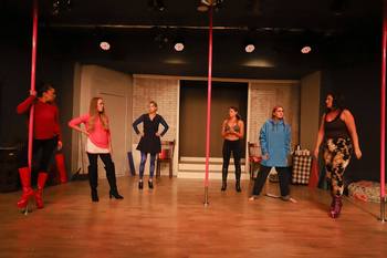 There's Bev (Angela Squire), who tosses off randy jokes about sex and men, and glibly counters criticisms about her weight, but inside she's lonely. Her young friend Faith (Anabel Pimentel) just wishes she could actually have a boyfriend. Trisha (Katie Kelley) has the perfect husband, but obsesses about making her body even more ideal, until she gets reproof from Sarah (Bonnie Jean Shelton), upscale matron who has had a partial mastectomy. Rita (Serena Elize Flores) hopes to launch a new career, and the class teacher, Gabby (Heather Danielle), strives to meet all their diverse needs and personalities while nursing wounds from her own past. There's no actual nakedness, and sometimes the truth proves elusive, but the jokes are plentiful, as are sight gags as the women struggle with "loving their pole." When one of the women receives devastating news, a more serious theme creeps into the proceedings, and they all rally to a new commitment. It's definitely a "feel-good" genre, women bonding over laughter and tears, commiserating about shared issues, and gaining confidence in themselves. The play has had at least six national tours already in the U.K., testimony that audiences, particularly women, must still love this kind of show, no matter how predictable and stereotypical. In this case, the payoff at the resolution is surprisingly differentstill veering towards sentimental, sure, but at least providing truly remarkable entertainment in the bargain. Major quibble: the heavy colloquial London accents are problematic, and aren't necessary anyway. If the characters must be English, a suggestion of accent would be enough. It's often hard to understand the dialogue and jokes are lost, in part because of the accents but also because these talented actresses sometimes seem to lose the comedic rhythm in their efforts to deliver the accent. It's easiest to understand Sarah because she's more posh, but the other characterizations would not suffer for softening the accents. Lighting by April George fine-tunes the studio ambience as well as multiple transitions, and gives great performance lighting for the finale. The simple set by designer and director Argo Thompson transports us into a remote studio, with the requisite poles. Costumes by Sandra Ish manage many different looks for each woman and say volumes about character. Sergia Louise Anderson's choreography is a marvelous introduction to the niche world of pole-dancing, and the women's gradual progress as dancers adds appreciation for the difficulty and beauty of the art. Sound by Joe Winkler adds fun music and mood. David Templeton deserves mention for his delightful several appearancesI can say no more. Don't go for any deep feminist message, or for meaningful sexual politicsit's not that kind of show. Let the genre be what it is, and enjoy these fine actresses breathing real life into a pep-talk. And definitely don't leave before the finale. The Naked Truth, through September 30, 2018, by Left Edge Theatre at Studio Theater, Luther Burbank Center for the Arts, 50 Mark West Springs Rd., Santa Rosa CA. Tickets $25.00-$40.00 can be purchased online at www.leftedgetheatre.com or by phone at 707-546-3600. |