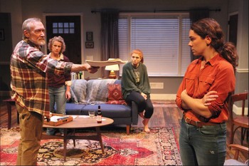 The crisis they facethe true nature of which won't be revealed until act twohas the family mostly hunkered down at home, avoiding the news crews and photographers who wield telephoto lenses "like sniper rifles." Their oldest son Travis has committed suicide after committing a series of despicable crimes, and daughters Annie (Martha Brigham) and Macy (Emily Radosevich) have returned to Detroit from the two coasts to help their parents Mitch (James Carpenter) and Angela (Emilie Talbot) deal with the details of Travis's funeral and grieve as a family. The cast features some of the Bay Area's top talent, the set is a suitably middle-class living room created by designer Edward T. Morris, and the affair is crisply directed by Jessica Holt. And though playwright Ashlin Halfnight has a skilled ear for dialogue and a sensitivity to family dynamics, his play The Resting Place, in its world premiere production at Magic Theatre, ultimately collapses under the weight of unrealized dramatic expectations, an unconvincing shrillness of character, and a narrative arc that fizzles when we expect it to explode in shocking revelations. From an acting standpoint, there are almost no false moves. As the two sisters, Brigham and Radosevich beautifully fulfill the roles so many adult children often play when a family is in crisis, lifting parents beat down by a lifetime of work and responsibility, culminating in that worst of all losses, outliving a child. Annie and Macy each have high-pressure jobs they leave behind, and Brigham and Radosevich display a flinty, head-down determination, tackling all the gory details that accumulate after a tragedy. They butt heads, but never lose sight of being sisters. As the grieving parents, Carpenter and Talbot are superb. There is a moment when Carpenter has to lean against a wall, his hands gripping a railing to keep himself upright that simultaneously encapsulates the mortal emotional wound he has received and the inner strength he summons to deal with it. As the Jameson-sipping mother, Talbot has a lovely, sloppy detachment that covers her pain with a sheen of pearl-black humor. No, the problems here all land squarely on the shoulders of playwright Halfnight. As a recovering Catholic myself, I had major problems with the way the parents and children speak to each other. The Jacksons seem to be committed to their faith, and have a relationship with the local priest, but their profane outbursts and casual cruelties to each other felt misguided and out of scale, like an arson using an accelerant on a fire that is already well on its way to becoming a conflagration. It makes the anger and bitterness feel forced and false. The story also feels unnecessarily amplified. Although Travis's crimes were contemptible, they are also sadly far too common to justify paparazzi staking out the house, or the father having to face a sea of "50 microphones" or a stack of front page news stories, or the police peeling tile from a bathroom in search of evidence. It left me thinking, "That's it? That's your big secret?" Yes, the Jacksons suffered an awful loss, and they are seeking a resting place not just for the remains of their son, but for themselves to heal and move on. But Halfnight has made too big a deal of their pain. He neither shocks us, nor makes us truly care, and that's the real tragedy here. The Resting Place, through November 4, 2018, at Magic Theatre at Fort Mason, Two Marina Boulevard, Building D, 3rd Floor, San Francisco CA. Performances are Tuesdays at 7:00 p.m., Wednesdays-Saturdays at 8:00 p.m. and Sundays at 2:30 p.m. Tickets range from $15-$75 and are available online at MagicTheatre.org, by phone at 415-441-8822, or in person at the box office, which is open Monday-Friday from 10:00 a.m. to 5:00 p.m., and on Saturday and Sunday one hour prior to curtain. |