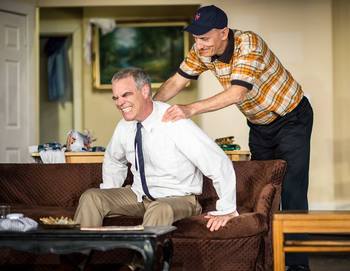 The Odd Couple focuses on two middle-aged men, recently divorced Oscar (Russ Whismore), in his eight-room Manhattan apartment, and his friend, newly separated Felix (David Boyll). When the weekly poker game at Oscar's pad gets interrupted by Felix's suicidal threats following his eviction from home, Oscar is prompted to offer Felix a temporary landing, which Felix gratefully accepts. We soon learn that Felix's neatnik habits, compulsions and neuroses make a poor match with Oscar's free-wheeling, slovenly bachelor demeanor, leading to amusing arguments and stand-offs. A botched double date with the Pigeon sisters (Jayme Catalano and Crystal Wilson) brings the ill-fated pairing to a final confrontation, and ultimately a funny, fitting resolution. It's not deep or dense, but it is a rather brilliant early entry in the "sitcom on stage" genre, which Simon practically invented in the 1960s. Filled with zingers, sight gags, and farcical elements, it relies on engaging an audience's sympathy and identification, laughter arising from the slightly exaggerated reality of likable, believable characters. Whismore as Oscar isn't nearly slovenly enough or gruff enough, especially in the opening poker scene, but improves in his scenes with Felix. Boyll's Felix delights, with his nasal honking and victim-posing, bringing enjoyable life to a potentially difficult character. He could go even further with it all while avoiding mugging expressions. Jill Wagoner, while something of an anachronism as a woman in a men's poker game in 1965, nicely fills the role of Speed with her no-nonsense pronouncements and wisecracks. Catalano and Wilson are terrific Pigeons, making their iconic scene work wonderfully, in spite of some inappropriate pawing of Felix. As three other poker friends, Patrick Barr, Philip Coleman and Frederick Lein do their best with lightly drawn characters. Ross Valley Players' production contains some lively, laugh-out-loud moments, but not enough of them to do homage to a comic classic. Timing feels off, or ignored; pace is too fast in spots, slow in others; and mostly the characters fail to engage our sympathies. It's hard to see any chemistry or friendship between the two men, despite their declarations of "best buddy" status. The prolonged shouting in act three runs roughshod over the humor and the supposed relationship. There are numerous missed moments for laughswhere is the unholy mess in the apartment at start of the show? What happened to the amusing deadpan exchanges in the poker game? Where are the uncomfortable, awkward pauses in the date scene with the Pigeon sisters? Too many lost opportunities. Set design by Ron Krempetz gives us Oscar's spacious apartment, but the poker table is too far upstage for us to appreciate the action. Sound design by Bruce Vieira adds nice commentary to the action, and Frank Sarubbi has done a good job with lighting. Costumes by Michael A. Berg evoke 1965, but seem too tame for delineating Oscar and Felix. Dhyanis Carniglia has a field day with period props. A true classic that's "hard to hurt," The Odd Couple at Ross Valley Players will undoubtedly improve your evening, and perhaps remind you why Neil Simon is often called the master of comedy. Ross Valley Players' The Odd Couple through December 16, 2018, at the Barn Theater at Marin Art & Garden Center, 30 Sir Francis Drake Blvd., Ross CA. Tickets $15.00-$27.00 can be purchased online at www.rossvalleyplayers.com or by phone at 415-456-9555. |