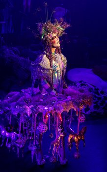 Here in the Bay Area, we tend to have a much broader range from which to choose. Yes, American Conservatory Theatre puts A Christmas Carol on the boards every December, but the Theatre of Yugen does its A Noh Christmas Carol, ODC/Dance annually gives us The Velveteen Rabbit, and New Conservatory Theatre Center seems to be turning its production of Avenue Q into a tradition, even though its only connection to the holiday is that one of the characters is named Christmas Eve. And Lauren Gunderson has created another offshoot of her holiday brand with The Wickhams: Christmas at Pemberley, which just opened at Marin Theatre Company. But no one is stirring the holiday cauldron with greater ferocity than MacArthur "genius grant" honoree and drag queen extraordinaire Taylor Mac, whose Holiday Sauce opened last night at The Curran. In fact, with the help of costume and set designer Machine Dazzle, Mac transformed the theater into judy's (Mac prefers the personal pronoun "judy") own cauldron, into which judy promised to throw all the stress and angst of the outside worldincluding "the guts of Donald Trump"to transform it into something spectacular and healing. There's no narrative thread to the showit's simply a collection of songs (from "God Rest Ye Merry, Gentlemen" and "Silent Night" to the Rolling Stones' "You Can't Always Get What You Want" and The Pogues' "Fairytale of New York," which includes the unforgettable lines: "You scumbag, you maggot, you cheap lousy faggotHappy Christmas, your arse, I pray God it's our last.") and musings and reminiscences from Mac about holidays past and judy's take on life and performancewhich, for Mac, are one and the same. In fact, though there may be no narrative, there is a thread running through this show as strong as one of the steel cables holding up the Golden Gate Bridge, and it's Taylor Mac's individual artistic vision. And what a vision! Inspired by judy's drag mentor, Mother Flawless Sabrina, who told Mac "irreverence is a toolnot a way of life," Mac tears into holiday traditions, reframing them with a sublimely queer sensibility. This is most notable in judy's deconstruction/appropriation of the classic Christmas hymn, "O Holy Night." Mac keeps the lyrics of the gorgeous, anthemic tune, but stops the music every time there is a word of phrase judy wants to redefine. "Holy" gets a different (and visual) interpretation, "sin" is meant to call up "capitalism," and you can imagine where things go during the line "fall on your knees." It's bitingly irreverent, but if one of the goals of the holiday season is to bring people together, Mac succeeds wildly, as the entire audience at the performance I attended stood and sang along, performing the gestures Mac had demonstrated during the first playing of the song. Mac's credo is that "perfection is for assholes," but there is something flawless about Mac's artistry, as judy is never less than fully committed to judy's vision. As Mother Flawless Sabrina drummed into judy, "Normal is just a setting on the dryer," and nothing here conforms to a usual or typical standard. Everything is surprising and delightfully off-kilter. When Mac enters, judy is wearing a costume that makes Mac look like a spangled holly bush that has been ripped from the garden by its candy cane roots. And it only gets weirder and more magicaland occasionally touchingafter that.
