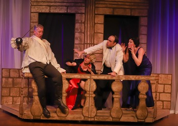 It's 1953, and box office stars George and Charlotte Hay (Dodds Delzell and Madeleine Ashe) try desperately to hold on to their fading glory, their budget, and their dignity as they slog through plays in repertory at middling theatre venues like Buffalo, New York. Actors are quitting because they haven't been paid, and it's getting harder for George to persuade Charlotte to continue the lackluster tour, especially when their company lawyer Richard (Joe Winkler) keeps trying to woo Charlotte away. The Hays' daughter Rosalind (Chandler Parrott-Thomas) has already abandoned theatre in search of a normal life, but she shows up unexpectedly with weatherman fiancé Howard (Erik Weiss) in tow, hoping to introduce him to mom and dad at an opportune time. Her ex-fiancé Paul (Robert Nelson) still manages the company, and still carries a torch for Roz. Charlotte's nearly deaf mother Ethel (Shirley Nilsen Hall) and company ingénue Eileen (Victoria Saitz), who has a thing for George, round out the cast. Disasters create situational sinkholes in act one until a call from George's agent tells him famous film director Frank Capra needs a replacement for Ronald Colman in his new film, stat, and is flying out to watch the matinee. Act two picks up farcical steam with mistaken identities, costume confusion, slamming doors, and a hilarious attempt to sober up a drunken actor. When the matinee finally begins, all bets are off as to what Capra will actually see. While the script bears resemblance to Ludwig's earlier play, Lend Me a Tenor, it still has ample laughs and gags of its own. It's nothing earth-shaking, just a delightful homage to theatre folk with a dash of romance both young and old thrown in. Director Carl Jordan has cast with actors well-matched to roles and up to the comedic demands of a fast-paced farce. Delzell and Ashe capably handle swordplay, verbal retorts, and physical comedy, and have the requisite chemistry. Parrott-Thomas is a standout as Rozher few minutes trying to salvage the opening moments of Private Lives are theatrical gold. She and Nelson threaten to steal the show with Roz and Paul's rekindled romance. Hall's wonderful deadpan looks make the character, and Saitz is suitably young, pretty, and shallow but shrewd. Weiss is adept at physical slapstick, but it's overused in act one, and his demeanor throughout is far too exaggerated for believability. Winkler as Richard presents a very understated alternative to George's volatility, but avoids being charming. Scenic design by Jason Jamerson wonderfully captures the backstage greenroom of a bygone era, with lots of doors, and lighting by April George adds much to the gleefully cartoonish style of the show. Marcy Frank's period and production costumes are quite attractive and character appropriate, and allow for the rigorous movement involved. Fight director Marty Pistone conjures both "stage" and "real" fights among various characters with great effect. Joe Winkler's sound design offers up excellent '50s music, but seems unnecessary for certain sound effects on stage. Overall, it's a delicious and decidedly entertaining evening, with a capable cast in a crazy farce. Be prepared to laugh out loud a lot. Moon Over Buffalo, through February 3, 2019, at 6th Street Playhouse, 52 West 6th Street, Santa Rosa CA. Tickets $20.00-$30.00 can be purchased online at www.6thstreetplayhouse.com or by phone at 707-523-4185 ext. 1 |