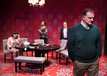 The set is simple: a Pottery Barn-esque dining set, laid for six, with a couple of small occasional tables at stage left and right. But it's the environment in which those furnishings sit that establishes a sense of encroaching doom. The walls are painted blood red with a stenciled pattern in bluebut that theme is not contained by the walls, instead spreading across doors and even onto the floor, extending all the way to the first row of audience seats. It's as though we are being told that when very awful things happen, their effects tend to seep not only into every aspect of the lives of those deeply involved in a tragedy, but alsoas in Dear Evan Hanseninto the lives of those more remotely connected. And just as in Dear Evan Hansen, the tragedy here is teen suicide. Debora (a sizzling Desiree Rogers) and Michael (Lawrence Radecker) are the parents of Joel, a misfit boy who seemed to relish his queer, outsider status, posting videos on YouTube of himself lip-syncing in drag, and calling out "hey, faggot!" to pretty much everyone in his school. Which pissed off Curtis (Baela Tinsley), Joel's classmate and one of a group of boys who relentlessly taunted and bullied him, both in person and online. His excuse?: "He tried to be a freak, and he did it in everyone's face." On this evening, Curtis and his parents Bill (Kenneth Heaton) and Tamara (Cheryl Smith) have accepted an invitation to dinner with Michael and Debora in orderin Debora's wordsto "clear the negativity." This seems both big-hearted and incredibly naïve on Debora's part, something Michael recognizes when he asks, prior to their guests' arrival (they are late, hence the title), if they are prepared for the evening to be a "complete, unmitigated disaster." The idea that two families can, during a single dinner party, find healing after one son played a crucial, if somewhat ancillary, role in the death of another seems rather far-fetched. But where would drama be if people didn't sometimes do rather far-fetched things? There's also the fact that the action takes place somewhere in Canada, and the stereotype of Canadians being generally kind, polite, and forgiving isin my experiencebased in truth. Still, it seems unlikely any true absolution or mercy is likely, given the freshness of the wound. (Though just how fresh, playwright Tannahill never tells us.) The two women are the most committed to the process (Bill tells Michael, when the women are briefly out of the room, that he's "not interested in closure") and when their mama bear instincts kick in, it is between them that the sparks of parental protection are whipped into a wildfire of anger and blame. When Debora spits at Tamara that she is "as complicated as a coloring book," the economic and class differentials between the couples (Debora is an artist and Michael a conservative politician, while Bill and Tamara are more working class) are finally stripped away, and any thought of dessert and coffee are forever banished. The cast director Evren Odcikin has assembled do wonderful work. Rogers displays a ferocity that is undeniable; in the early scenes she does a marvelous job of presenting a veneer of openness and understandingyet still hinting at the rage her character holds toward anyone who played a part in her son's death. (Which includes not only Curtis and his parents, but also her husband and herself.) Kenneth Heaton is perfect in the role of the lumbering, rather emotionally stunted father of the bully. In his mind, "tough love" is what kids don't get enough of these days, and Heaton manages to make us believe he might be rightor at least that his character truly believes he might be right. As his wife, Cheryl Smith uses her wonderfully expressive face to lead us through her character's regret for her son's actions, as well as her indomitable maternal protectiveness. Though Tannahill's play takes a somewhat meandering path through the forest of grief and recrimination, often losing its way or finding one dead end after another, he does finally bring us out of the woods with a redemptive, and powerful, final moment. Late Company, through February 24, 2019, at New Conservatory Theatre Center, 25 Van Ness Avenue, San Francisco CA. Performances are Wednesdays-Saturdays at 8:00 p.m. and Sundays at 2:00 p.m. Tickets are $25-$50, and can be purchased at NCTCSF.org or by calling 415-861-8972. |