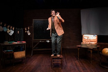 Presented as a kind of lecture with chalkboard and slide projections, the premise promises an intriguing conundrum as we follow clue upon clue in the librarian's search. How could the book have been checked out for over a century? Where has it been all this time and who returned it? Ordinary explanations fail as the clues deepen the search and become a kind of obsession. The librarian abandons his job, feigning illness in order to follow increasingly complex and even older clues, connecting dots until the dots seem to point to one answer. But it's an unbelievable answer, one that defies rational thought and demands a leap into a world of belief that the librarian has previously avoided. Glen Berger's play has been popular since its 1981 premiere, in well over 200 productions including several in the Bay Area. The playwright revised it after playing the role himself a few times. There's a chattiness about the main character that one finds either charming or distracting, as he takes many verbal bird walks to display his encyclopedic knowledge and fill our heads with little-known facts. The character and his somewhat pedantic, repetitive narrative are stereotypical, mired in a kind of 1980s style of humor that sometimes feels calculated. It takes a long time for the premise to develop, leaving one time to wonder why the stakes are so low and where this is all going. Instead of the original 90-minute one-act, this production inserts an intermission, adding length and interrupting the narrative flow. When the dots finally begin to connect, act two lifts the action and briefly becomes more engaging, but the play fails to deliver on its earlier promise, falling into confusing philosophizing and too many metaphors. That the librarian is indelibly changed is the one takeaway observation, but the how and why of that is debatable, and it all doesn't add up to much in the end. Shillington displays admirable comfort and familiarity with the librarian, part neatnik, part nerd, a bit down on his heels in his relatively small niche, and transforms well in act two: as the librarian unravels the thread, he himself unravels, becoming more passionate about his quest. The actor's natural charm and appeal are more persuasive than the script, but can't save it from its flaws. Director John Craven does his best to keep the action moving, and design elements are finescenic design by Joseph Elwick, lighting by Alisha Ramos, and costumes, props, sound and projections by Elizabeth Craven all work together well. For this reviewer, it's a thin tale, overworked and overlong. Perhaps at 90 minutes it would fare better. In fairness, many in the audience seem to enjoy its folksy chattiness and the actor's affability. Seeing John Shillington work the stage for two hours might be treat enough for an evening's entertainment. Underneath the Lintel, through February 17, 2019, at Cinnabar Theater, 3333 Petaluma Blvd., Petaluma CA. Tickets $15.00-$30.00 can be purchased online at http://www.cinnabartheater.org or by phone at 707-763-8920 |