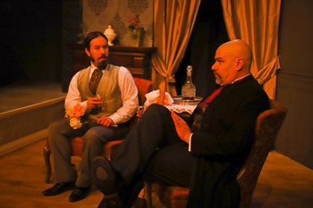 Sims (Chris Schloemp) has engineered the most advanced virtual world in his time, known as the Hideaway, a Victorian home complete with sensory details such as music from a Victrola and the kick of aged Cognac. Logging in to the Nether (what used to be called the internet), one can create an avatar and visit the Hideawaythat is, if one is interested in being able to virtually molest and murder children. It's important to note that there is no actual molestation or murder depicted, but there may be discomfort from even the suggestion or description of these acts. Knowing they're committed virtually, and not "in-world," may allow enough distancing to move past the acts themselves and consider the ethical questions Haley raises. No doubt the playwright chose the most clearly heinous of crimes as the test case for possible intervention. Detective Morris (Leila Rosa) interrogates Sims, arguing with him over his philosophical justifications for his virtual debauchery. She also interrogates Mr. Doyle (David L. Yen), a participant in the Hideaway, hoping to obtain details about Sims that will enable her to arrest him for his Nether world and prevent him from logging in ever again. In between interrogations we witness scenes in the Hideaway, as Morris' secret agent Mr. Woodnut (Jared N. Wright) attempts to gather evidence against Sims. Woodnut is introduced to the favorite girl, Iris (Lana Spring), but his reluctance to participate "fully" in the program flags him as suspect. Sims' most compelling argument is that by fulfilling his need, or his "sickness," online, he is sparing children in the real world from his affliction. But Morris counters that he is creating real damage and hurt in the virtual world without being aware of it, fiercely arguing against his so-called right to create such a space. Ethical questions abound, and they urge debate about our current inability to police the internet. At what cost do we maintain a totally free and unhampered internet, as it was intended? A relatively slow and ponderous first act is heavy with exposition and debate; after intermission there's a much livelier second act, where the dots connect, and surprising revelations deepen the discussion and lay waste to obvious solutions. Director Argo Thompson has cast well. Schloemp is superb as Sims, giving him nuance and credibility, an oddly sympathetic twist despite his proclivities. Yen is touching and layered in Doyle's uncomfortable shoes, and Wright capably delivers a conflicted soul confounded by terrible self-discovery. Spring, an adult playing an 11-year-old girl, gives a stunning performanceangelic, disarming, and utterly believable. Rosa appears to have some difficulty as the detective, which makes more sense once we get to the second act, where her true self emerges. Thompson's scenic design suffers from the split stage. Would that we had a clearer portal into the Hideaway by better stage arrangement, which might have given lighting designer April George better angles for that glorious sunlight, better differentiation between the two worlds. Splitting the play into two acts does it a disservice, when a taut 80 minutes would pick up the pace throughout and build better momentum toward the surprising resolution. Sandra Ish does beautifully with the period costumes and the dark palette of the modern world, but Rosa's shoes stand out as awkward and heavy. Joe Winkler's sound design relies mostly on Philip Glass, nicely atmospheric but sometimes distracting or sleep-inducing. The Nether isn't a play for everyone. Its topical resonance ensures lively discussion post-show, if one can tolerate the provocative material. The Nether, March 24, 2019, at Left Edge Theatre, Studio Theater, Luther Burbank Center for the Arts, 50 Mark West Springs Rd., Santa Rosa CA. Tickets $25.00-$40.00 can be purchased online at www.leftedgetheatre.com or by phone at 707-546-3600 |