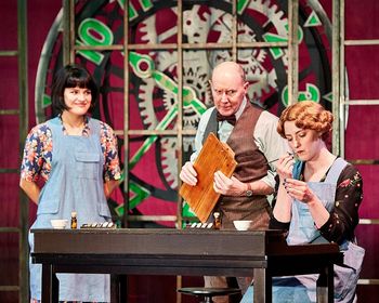 Based on the lives of four young women who were hired by the fictional Radium Dial watch company of Ottawa, Illinois, in the 1920s, the play focuses on the inner strength, spunk, and sheer determination of the women, many as young as 15, who were paid a pittance (8 cents per), but to them a princely sum, to paint the numerals on the faces of wristwatches with radium. The carcinogen made the watch faces glow, and eventually did the same for the women as it relentlessly sickened them. The corporate greed and non-existent labor standards of the day resulted in companies directing the women to use their lips to create a fine point on their paintbrushes before dipping that point into the radium powder, a task repeated hundreds of times daily. Featuring five RVP newcomers on scenic designer Malcolm Rodgers' surreal stage dominated by a giant clock-face, the story begins with young worker and wife Catherine (Jessica Dahlgren) leading us through the time, which she describes as "Not a fairy tale, though it starts like one, and not a tragedy, though it ends like one," when she and co-workers, the sweet Frances (Jazmine Pierce), comic and adorable Pearl (Carly Van Liere), and ballsy Charlotte (Sarah Williams), develop the illnesses which will eventually kill them. Frankie Stornaiuolo plays Catherine's husband Tom in a production that is capably and unsentimentally helmed by RVP regular Mary Ann Rodgers, whose directorial skills shine. Rodgers' real-life husband, RVP stalwart Malcolm Rodgers, who also designed the sparse set, gives a wonderfully nuanced performance as Radium's "company doctor," the definition of which one character claims is, "A doctor who works for the company." In the role, Rodgers' brusqueness and righteous indifference while "examining" Catherine will make you want to shout "Shame!," while his subtlety in a closing scene with Stornaiuolo is one of those moments that might bring tears to your eyes. Founded in 1930 as an escape from the Depression, Ross Valley Players is the oldest continually operating community theater company on the West Coast (complete with brand spankin' new seating), and productions like These Shining Lives, which spotlights a mash-up of wonderful work by new talent Dahlgren, Pierce, Williams, Van Liere and Stornaiuolo and seasoned veterans like Rodgers, should ensure the company's continued success for years to come. You'll laugh, you'll cry, and you'll bristle with indignation watching this beautifully balanced and impeccably well-cast ensemble. It's a do-not-miss production. These Shining Lives, through March 31, 2019, at Ross Valley Players, The Barn Theatre, 30 Sir Francis Drake Blvd., Ross CA. Performances are Thursday 7.30 p.m., Friday and Saturday 8 p.m., Sunday 2 p.m. For tickets and information, visit rossvalleyplayers.com or call 415-456-9555 Ext 1. |