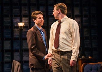 This two-hander, expertly directed by Arturo Catricala and featuring Adam Niemann as William Inge, explores the artistic and sexual longings of these two literary lions when both were in the very early stages of their careers. Aside from their literary ambitions, the two men had much in common. Both were gay, though Inge was deeply closeted and remained so all his life, while Williams was as out as one could be in 1944, going through lovers like they were Kleenex. Both were alcoholics, thoughtrue to their sexual naturesInge fought his urges, going in and out of rehab, while Williams seemed to celebrate his love of a cocktail or twelve. And both were mostly (or entirely) raised in the Midwest. The beautifully accomplished set by designer Kevin Landesman, featuring a sofa, an upholstered chaise longue (that simply cries out to be a fainting couch), a steamer trunk doubling as a bar (and seeing significant use), and a backdrop of black pages featuring text from the two men's plays in white type, provides a lovely setting for a complex predator-prey relationship in which those roles are occasionally as fluid as the free-flowing gin. At the top of the play, it's clear that Williams is in charge. Pickman-Thoon establishes a bitchy swagger that places him firmly in the alpha position. He owns the playsetting the scene in asides to the audience that reveal his dominance and insecurities in equal measure. He's far more accomplished than Inge"I've done a few things," he says, "some of which I'll even admit to."with his first play, The Glass Menagerie about to be staged in Chicago. But he's still a young artist hungry for the bit of publicity Inge's interview might provide. Yet Inge is clearly in awe of Tennesseeboth as the local boy who made good, and as a man unashamed neither of his sexuality nor his desire for celebrity and public attention. Inge wants what Williams hasor at least is on his way to gettingbut is filled with self-loathing and a crippling lack of confidence. Pickman-Thoon is wonderful, slurping up the richness of the role Dawkins has created. Tennessee Williams gets almost all the laughs in the play, and Pickman-Thoon delivers the comedy with perfect timing, and an air of detachment that says "I don't care what you think about me, as long as you love me" that feels absolutely in tune with the character of the actual Tennessee Williams. This is a powerful personality, and Pickman-Thoon manages to express that power with a gentility and tenderness that belies its impact. His performance is a like a knife so sharp you don't know you've been cut until you see the blood pooling at your feet. When he tells Inge (after a clumsy attempt at intimacy) that "the point of hiding together is not having to hide when we're together," you could feel the audience falling in love with Williams. As Inge, Adam Niemann does his best to keep up, but is hampered by two things, one of which is out of his control. As written by Dawkins, Inge is so unsure of himself (except in a beautiful scene in which he describes his dream of a gorgeous man he imagines coming to his town, where his beauty lays bare the imperfections of everyone elseforeshadowing the handsome drifter who throws the town in Inge's Picnic into chaos) that it's hard for him to take control of a scene. But Niemann undercuts what power his character does have by overplaying both his angst and sensitivity. A bit more delicacy with the role would bring him into balance with both his scene partner and the tone set by director Catricala. Dawkins' play is filled with marvelous, catty lines that had the audience roaring. "I had every intent of being punctual. But then wasn't," Williams says as a sorry-not sorry to Inge. Later, after Inge's dog attacks Williams, an aside to the audience explains how she tore at his calf "using only her teeth and ambitionlike Bette Davis." The play is at its best when it's being bitchy. And though there are some lovely moments, especially about the risk involved with being an artist (Inge attributes his reticence at writing to "the pressure of someone seeing my soul, and finding it wanting."), The Gentleman Caller overstays its welcome, especially when it dives into the horrors its characters have experienced. The Gentleman Caller is well worth seeing, however, in part because it reveals something ultimately beautiful about the life of the artist, poignantly expressed by Brennan Pickman-Thoon as Tennessee Williams: "To live. To write. To tell the truth by putting on a show." The Gentleman Caller, through May 5, 2019, at New Conservatory Theatre Center, 25 Van Ness Avenue, San Francisco CA. Performances are Wednesdays-Saturdays at 8:00 p.m. and Sundays at 2:00 p.m. There are additional performances April 27 and May 4 at 3:00 p.m. and 8:00 p.m. Tickets are $25-$55, and can be purchased at NCTCSF.org or by calling 415-861-8972. |