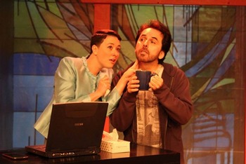 We first meet Scottie's two adult children, Beth (Heather Gordon) and Tim (Anthony Martinez), casually bickering, as siblings do, about caring for their mother, about each other's life/love choices, and, somewhat oddly, about deathseems Beth has her memorial service planned already, including writing her own obituary. She's taking a dangerous trip to Nepal and wants Tim to be prepared in case she doesn't return. Beth also laments that her mother doesn't travel or have any activities, and admonishes Tim to keep in touch with her. But we soon learn that Scottie indeed travels, keeping it secret from her children with the help of her aide Bernadette (Rosie Frater). There's one trip she's planning, to a shrine in Japan located in "The Forest Where Lies Are Revealed." As scenes unfold in short "duets," we meet Claire (Paige Picard) and Gary (Ariel Zuckerman), a young couple negotiating a break-up in a dreary restaurant, as well as Rhonda (Chandler Parrott-Thomas), Bernadette's sister who works in a mortuary. Tim encounters her there when trying to get the self-obituary he posted online deletedwith both comic and serious consequences. Lives intersect in surprising ways, unrelated characters suddenly meeting and bouncing off each other in cascading scenes, but no one is the wiser to the hidden connections, none being revealedexcept to the audience. There's laughter in the dialogue, but also poignant moments of revelation and self-awareness. A running current throughout touches on regret and dismay over bad choices or botched opportunities. If Scottie could have seen the ripple effects of uncertainty, doubt, and missed connections playing out in the lives around her, she would have been happyfor an audience, it may be difficult to witness so much happenstance without a shred of serendipity, without once seeing characters recognize the hidden relationships. But, ultimately, there's a kind of comfort in knowing it doesn't really matter. Life is simply like that, Dietz seems to tell us; and you can't worry about it. There's so much of life we may never comprehend, so many opportunities lost, or connections we didn't makebut what of it? It's still Life being lived, relentlessly uncertain and filled with doubt. There are moments of clarity and even redemption thrown in, seemingly at random, for us to cherish. The play suffers some toward the end from its own cleverness and an awkward finale that feels anticlimactic. After all that evasive maneuvering, it needs a more solid emotional punch to lift up the melancholy, to bring the narrative to a close and touch our hearts. The excellent cast, however, does fine character work, both heartwarming and funny. Martinez and Gordon show many layers for their complex sibling characters, each possessing expert comic timing and yet able to turn serious and sympathetic. Frater musters emotional caring for her patient and her estranged sister. Parrott-Thomas delights as the enthusiastic and slightly wacky mortuary clerk, and then pairs more soberly with Gordon in a key scene at the shrine. Picard as Claire and Zuckerman as Gary shine in their various scenes. Picard does well with some particularly thorny monologues, and Zuckerman shows off his considerable acting chops. DeBaun as Scottie admirably anchors the script, and gets to deliver what sounds like wisdom in a suitably casual tone. In a sense she's the playwright's raisonneurbut the character's default to regret mires her in the same soup as the others. Argo Thompson's brilliant set design, combining Japanese simplicity with beautiful video projections and April George's gorgeous lighting, adds immeasurably to the whole experience. Sound design by Joe Winkler further enhances with thoughtful scene changes and ambient sound that never intrudes. Sandra Ish's costumes are appropriate and occasionally witty statements. Director Phoebe Moyer guides solid performances from her first-rate cast, and keeps up the pace. At ninety minutes without intermission, the show moves smartly from scene to scene, serving up humor and food for thought. Desire for a more solid finale doesn't detract from the overall excellent work on an unusual script, and a stimulating narrative. You'll have time after the show for interesting reflection on the themes presented. Left Edge Theatre's This Random World, through May 26, 2019, at Studio Theater, Luther Burbank Center for the Arts, 50 Mark West Springs Rd., Santa Rosa CA. Tickets $25.00 - $40.00 can be purchased online at www.leftedgetheatre.com or by phone at 707-546-3600 |