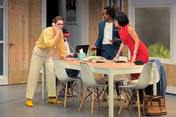 But the internet (and related technologies) brought unintended, if not unforeseen, negative consequences: fake news, identity theft, shortened attention spans, foreign manipulation of elections, andsomewhat counter-intuitivelya disconnection from real human interaction. Although Branden Jacobs-Jenkins never directly addresses how technology has fundamentally altered the way we deal with our fellow humans, it nonetheless pervades his 2015 play Gloria, which opened this week at American Conservatory Theater's Strand Theater. Gloria takes place in the offices of Grid, a fictional New York magazinespecifically, in the copy department where the assistants to the different editors occupy cubicles and alternately savage each other and assign menial tasks to the intern, Miles (Jared Corbin, who shimmers with focused energy), while they complain about the dead-end nature of their jobs. At least Kendra (Melanie Arii Mah) and Dean (Jeremy Kahn) do, for Ani (Martha Brigham) is by far the most chill and emotionally open of the three. (She also has great taste in theatre, with her cubicle decorations including Playbills from August: Osage County and Venus in Fur.) The set by Lawrence E. Moten III and lighting by Wen-Ling Liao perfectly establish the sort of sterile, soul-killing cubicle space in which so many modern workers toil. Though they labor in close quarters, the characters are mostly disconnected from each other, partly from their ambition, which expresses itself in competition among themselves, and partly through technology. Miles, despite being the youngest and most gregarious of the bunch, seals himself off from the others by wearing noise-cancelling headphones. But he's only the most faithful to his musicthroughout the play, other characters are often seen shut off from the rest of the world with their ears covered and their eyes glued to screens. There are shocking moments in Gloria, which I won't reveal (and if you want them to be a surprise for you, I highly recommend ignoring the trigger warnings posted as you enter the theater). I will say the Jacobs-Jenkins does a brilliant job of both foreshadowing what is to come and hiding it behind a barrage of dialogue that snaps and crackles with equal measures of humor and vitriol. The first act (until just before curtain) feels a bit like a paintball war: projectiles flying in rat-a-tat rhythm, a bit chaotic, leaving bruises and raising welts but inflicting no permanent damage. But at the end of act one, everything changes for everyone, and all the actors (save for Matt Monaco, as Lorin) play different characters post-intermission. There are some truly wonderful performances on display here. Lauren English is marvelously schlumpy as Gloria (yet rather glamorous and confident when she returns as Nan in act two), an underling who's worked at Grid longer than pretty much anyone else. She shambles and shies back and exhibits anything but confidence, despite her long tenure. English occasionally looks down her nose at the other charactersnot in a haughty or superior way, but as a technique of self-protection, almost like a startle response, and it's heartbreaking. As Ani, Martha Brigham has a Lili Taylor-like quality that manages to project a sense of confidence and strength, while at the same time revealing the vulnerability of her character. Where Kendra and Dean spar to cover up their weaknesses with showy bluster, Martha Bingham's Ani seems above the fray while still participating in it. Her portrayal in act two of Sasha, a publishing executive, is a little chilly and mannered for my taste, but when she finishes as Callie, an assistant at a TV production company, her energy and eager gaze made me forget all about boring old Sasha. After the thrills of act onethe fierce dialogue, the explosive inter-office conflictact two is a bit of a letdown. Where the first half flies by with nonstop drama, act two tends to drag because it's mostly characters talking about and dealing with the events of act one. Fortunately, thanks to Eric Ting's stellar direction, even though the text focuses less on action and more on reaction, the pace remains sprightly and engaging. There are plenty of laughs in Gloria, but they come from a dark place: the loneliness that arises, in part, from a technology-infused world that seems to have increased the opportunities for isolation, rather than achieving tech's oft-promised goal of turning us into global villagers. Gloria runs through April 12, 2020, at American Conservatory Theater's Strand Theater, 1127 Market Street, San Francisco CA. Tickets range from $15-$110, and are available at www.act-sf.org. |