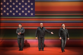 The performance troupe Culture Clashwho have toured extensively, but have their roots in the Bay Areaare a trio of Latinx (though they mock that term) theater artists who are able to navigate the narrow path between funny truth and sad, bitter truth in a way that is almost balletic in its grace and delicacy. Culture Clash use funny truth to remind you just how many unfunny things are going on, yet fill you with hope because they're helping ensure we don't harden our collective heart against the pervasive tragedies of our time. The three performersRichard Montoya, Ricardo Salinas, and Herbert Siguenzahave spent the last 35 years working together, and that familiarity comes blazing through in every moment of Culture Clash (Still) in America, which opened this week in the Peet's Theatre at Berkeley Repertory Theatre. The show is a collection of sketches, monologues and scenes that mostly stand on their own, but that occasionally connect. The trio plays the audience like a Stradivarius, pulling us in with tense drama, prickling our skin with a chilling interrogation of a Mexican man in ICE detention, only to defuse that tension with a sly line or a bit of comic physicalityand then to break the tension entirely by demolishing the fourth wall in a way that makes us roar with laughter. Or they will get you guffawing at a goofy and guileless South Florida couple, only to gasp at their take on the killing of Trayvon Martin, bringing you right back to sad, bitter truth. Montoya, Salinas and Siguenza inhabit a wide range of characters: Latinx, Caucasian, black, Middle Eastern, Asian, men, women, trans... And the amazing thing is, we buy them all. I knew almost nothing about Culture Clash prior to last night (foolish me!), so when I saw Herbert Siguenza as a black preacher, or Richard Montoya as a Muslim man, I thought Siguenza might have some African ancestry (meaning more than what all of us have) from how perfectly he hit that characteristic evangelistic pronunciation of the syllable "ch," or that Montoya just might have been raised Muslim from the fervent and focused way he knelt in prayer. Just as broad as the characters they play is the range of cultural and political subjects they address. They bring down the house with Salinas (playing an OG "Nuyorican" named Junior) giving a demonstration of how different Latin cultures dance salsa. (Puerto Ricans dance, he says, like they are "wondering if they left the iron on," and demonstrated this via a perfect distracted expression.) Salinas and Siguenza have a tremendously silly time presenting Todd and his wife Francis ("With an 'i,' she says), a Miami couple with a demolition business that benefits from all the cleanup after hurricanes. We laugh as they argue over whether Todd truly loves "Forensic Files," then shudder as they claim only 13 people died in Puerto Rico due to hurricane Maria. But the troupe wields its satirical sword with equal skill as they skewer a pair of older Berkeley radical grandmothers who frequent the "yerba mate counter at the Berkeley Bowl," get stoned, and complain how very white "Grandma Kush" was upset over not being accepted for membership in the Sisters of Color and survived "seven coup d'etats at KPFA." "It hu-urrt!," she whimpers. They even get in some sharp barbs at themselves as performers plying their trade in the not-so-lucrative world of non-profit theatre: "What a waste of fucking time!" Culture Clash (Still) in America is satire at its best: cutting with a razor-sharp blade and exposing hypocrisy and hubris. There are some very dark moments in the show, but it's never dreary, and it will leave you well-informed, perhaps a little more empathetic, and wonderfully entertained. Culture Clash (Still) in America runs through April 5, 2020, at Berkeley Repertory Theatre, Peet's Theatre, 2025 Addison Street, Berkeley CA. Performances are Tuesday, Thursday, Friday and Saturday at 8:00 p.m., Wednesday and Sunday at 7:00 p.m., and 2:00 p.m. Saturday and Sunday. Additional matinees have been scheduled Thursday, March 5 and Thursday, April 2 at 2:00 p.m. Tickets are $30-$97, with discounts available for students, seniors, and groups. For tickets and information, please visit www.berkeleyrep.org or call the box office at 510-647-2949. |