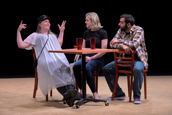 In this Marin Theatre Company production, the play opens in 2018 and Penelope is meeting a former colleague, Vanessa (Rebecca Schweitzer), to talk about their former boss at ArtStart, Otis (R. Ward Duffy), who is the subject of a New York Times investigation because Vanessa and several other ArtStart employees have accused him of sexual harassment. It's clear Vanessa isn't really close to Penelope ("I enjoyed re-establishing our connection, as well," she says, with all the emotional depth of a voicemail prompt), but wonders if she will be adding her name to the list of Otis's accusers. This is where Love gets interesting. Penelope takes a meeting with Ron (Robert Sicular), the Times reporter working on the story. Rather than piling on Otis and joining the chorus of women accusing him, Penelope presents as a strong, highly intelligent woman who doesn't look back at the events of 14 years prior as a victim, but tells Ron she was a willing participant and enjoyed the sexual aspect of the relationship with a man many years her senior. "Sex with guys in their 20s is a soul-crushing, orgasm-faking disaster," she says. Unlike David Mamet's Oleanna, which addressed sexual politics and political correctness and the way powerful men's influence shapes the way younger women experience a relationship between them, Love focuses not on the blame game but on how a woman can enter into such a relationship on her own terms. But about halfway through the play, things change. As Jaime (Bobak Cyrus Bakhtiari), Penelope's friend, lover and husband (at various points during the action) says, the greatest intellectual leap is not from zero to one on a number line, or even zero to infinity, "The greatest leap is nothing to zero." In other words, from not knowing anythingeven that there is something to know that you don't, but from knowing nothing to knowing that there is something to know. Even if you don't know what it is you don't know, at least you know it's there to be learned. And this is where Love starts to go off the rails. It leaves behind the fascinating question of where seduction ends and harassment and abuse of power begin, and ventures off into a series of scenes in which Penelope begins, it seems, to learn there are things she doesn't even know that she doesn't know. It all leads to some very unsatisfying drama and unmotivated actions by many of the characters. These I cannot further elucidate without spoiling Cortesi's plot. I will say that she mostly avoids moments I was expectingthe times when the creepy boss manipulates an underling into doing something that makes her uncomfortable. Rather, we mostly see the ripples, rather than the moment the pebble falls and sends those ripples outward. Yet, despite the skittering trajectory of Love that sends it off into an odd and unsatisfying territory, there is much to like about the play. I loved the first 45 minutes, but I also was enraptured by Clea Alsip's performance as Penelope. She takes Cortesi's dialogue and plays it like an Ornette Coleman solo: it soars and squawks and whispers and shouts and dares you not to listen to it. It's not always easy to listen to, but it's always rewarding. She's also able to be giggly and fun-loving and feminine without ever losing her inherent power and force of will. As Jaime, Bakhtiari is restrained, yet fully present in each scene. He represents the best kind of male energy, and stands in stark contrast to Otis, who seems to follow his penis wherever it wants to go. The set design by Stephanie Osin Cohen and projections by Teddy Hulsker are bold and elegant. The large type projected across a massive flat that spans the width of the stage and is equal in height to the space beneath it where the action plays out (using just a few items of furniture) not only sets the time and place (2018, A Dive Bar; 2004, The ArtStart Offices, etc.), it feels a bit like a Times Square readerboard or newspaper headline where the accusations leveled against Otis may play out if Penelope joins her female colleagues. This is a world premiere, so it's the first time an audience has been exposed to this story. It has a powerful message, and if Cortesi can peel away the unnecessary layers and refocus the second half, Love could become a fantastic exploration of the complex interactions at play between men and women with disparate levels of power and influencepolitical, professional, and personal. Love runs through March 29, 2020 at Marin Theatre Company, 397 Miller Avenue, Mill Valley CA. Performances are Tuesdays-Sundays at 7:30 p.m., with matinees Saturdays and Sundays at 2:00 p.m. Tickets range from $25-$70, with discounts for seniors, those under 35, military families and teachers. For tickets and information, visit marintheatre.org, or call the box office at 415-388-5208. |