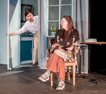 Ripcord, Lindsay-Abaire's most recent play (first produced in 2015), leans toward the conventional, but with healthy dollops of weirdness plopped on top, making it a bit of a mélange of his approach to drama. At its heart, Ripcord is almost a knockoff of Neil Simon's The Odd Couple, set not in a Manhattan apartment but an assisted living facility. Abby (Tori Truss) is a crusty loner who has driven away every roommate the staff at the home has assigned her. She kvetches about almost everything, and with a "who cares what anyone thinks" attitude that often accompanies old age, holds back nothing. When Scotty (Bau Tran), an aide at the home, introduces Abby to new roommate Marilyn (Pamela Hollings) it's not long at all before Abby tells her "I don't like you and I want you to go." When Marilyn shows Abby a painting her grandson made of a fire truck, Abby tells her it "looks like a pap smear." However, like Ted Lasso (of the wildly-popular and highly-praised show on Apple TV), Marilyn has a strain of optimism as bulletproof as a tank wrapped in Kevlar and dipped in reinforced concrete. None of Abby's snarkiness or cruelties seem to penetrate Marilyn's sunny nature. But when Abby insists nothing scares her, and Marilyn claims nothing makes her angry, the two enter into a bet: if Marilyn can scare Abby, Marilyn gets Abby's bed, which is by a window with a lovely view; if Abby can make Marilyn angry, Marilyn will have to switch rooms. This conflict drives the plot forward, as each woman tries increasingly desperate attempts to frighten or anger the other. Lindsay-Abaire keeps raising the stakes with these practical "jokes" until they turn sadistic and cruelyet somehow manages by the end of the play to create a tentative reconciliation, not simply between Abby and Marilyn, but between Abby and the wider world from which she has shut herself off. Unfortunately, the Ross Valley Players cast has a hard time finding even a tenuous balance between the comic and tragic elements of Ripcord. Their tone feels off-kilter through most of the first act, and while they seem to find their feet more in the second, more interesting act, they fail to adequately embody either the rage or the hope that Lindsay-Abaire has embedded in his characters. There's a scene in the first act set inside a haunted house that is supposed to look amateurish and silly, but it never achieves that purpose, in part because it's trapped within a production with too many elements that are also amateurish. Ripcord runs through October 10, 2021, at the Barn Theatre, Marin Art and Garden Center, 30 Sir Francis Drake Blvd., Ross CA. Performances are Thursdays at 7:30 p.m., Fridays and Saturdays at 8:00 p.m., and Sundays at 2:00 p.m. Ticket prices are $30 general admission ($25 on Thursdays), and $15 for those under 19. For tickets and information, call 415-456-9555 or visit www.rossvalleyplayers.com/ |