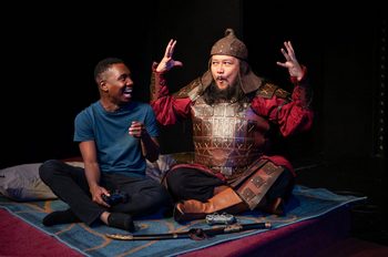 Moving is stressful at any time, but the stress is compounded when one is moving away from a place, rather than moving to someplace. Perhaps this is why, after a month, Jayden still hasn't unpacked many of the boxes in his room. Mom Crystal is working an all-night shift for the U.S. Postal Service, leaving Jayden alone. One night, as he sleeps, a hooded figure appears at his window, quietly sliding it open and stepping inside. The intruder stealthily moves through the room, opens the bedroom door to make sure no one can hear. When Jayden awakes and turns on the light, his eyes widen with fear, but in a very funny sequence (which cuts the tension delightfully) the intruder and Jayden banter about whether or not Jayden has actually "shut the fuck up" or not in a way that is almost Python-esque. Especially when the intruder is pointing a Glock at Jayden and Jayden is wearing a onesie. It's soon revealed that the intruder is Ant, the girl he "saved." Except Ant is quite insistent that Jayden acknowledge that she didn't need saving. "Like I need savin'," she says. "Like if some boy ain't around ..." After extracting a promise to tell no one he helped her, Ant crawls back out the window, leaving Jayden more confused and at sea than ever. Jayden has issues at his new school, as well. He's one of only two Black kids at the school, and his history teacher, Mr. Adams (Adam KuveNiemann) has taken it upon himself to try and help Jaydenin a rather clumsy, clueless, white privilege sort of wayto succeed in the school. It doesn't go well. Jayden hasn't been completing his assignments and, because he's waited so long to choose a historical figure for a report, he's been stuck with the last person on the approved list: Genghis Khan. On top of that, his report partner will be the very nerdy (but adorable) Gao-Ming (Kina Kantor, whose often wide-eyed reactions get some of the biggest laughs of the evening. I won't say more, other than that when Jayden needs help truly understanding the character of the Khan, he gets a nighttime appearance from none other than Temujin (the birth name of Genghis Khan). Temujin is played by a very imposing (and also very funny) Brian Rivera. Over the course of the evening, Jayden learns a lotnot only about Genghis Khan, but of the challenges of being Black in America. "We stand up," Jayden says at one point, "until they shoot us down." The cast assembled here is never anything less than brilliant. Leon Jones, at just 19, is a talent to be watched. His teen angst is absolute perfection, and his eyes reveal depths of meaning behind every line he delivers. Velina Brown soars as a mother trying to protect her child, while simultaneously wanting him to transition smoothly into adulthood. Kina Kantor has marvelous comic chops, and Adam KuveNiemann plays his role with a delightful earnestness. Jamella Cross effortlessly portrays a girl putting on a front of bravery while balancing vulnerability and confidence. Rivera roars as Temujin, taking charge of every scene he's in. It's a beautifully balanced cast. The Great Khan is both entirely about race and, simultaneously, nothing about race. It's a timeless story about that in-between time of adolescence and its challenges. It's about discovering who you are, how the rest of the world interprets who you are, and how to reconcile those two things in order to live a genuine life. It also drives homewith fierce conviction and sly humorhow isolated people of color feel within the white-centric culture that dominates life in America. Playwright Sullivan is to be commended for laying bare some of the subtle (and not-so) ways white privilege rears its pale head. When Jayden tells Mr. Adams (after challenging him to name 20 famous Black people who aren't entertainers or athletes and he fails miserably) "I guess if we aren't entertaining you, we're not important," the line seemed to hang in the air, sizzling with righteous anger. Michael Gene Sullivan has certainly entertained the audience with this amazing new play, but The Great Khan is far more than entertainment. It's a view of history and culture and humanity that would be incredibly important at any point in time, but is especially important now, as we continue to struggle to excise the racism that is deep in the bones of American culture. The Great Khan runs through November 13, 2021, at San Francisco Playhouse, 450 Post Street, San Francisco CA. Performances are Wednesdays and Thursdays at 7:00 p.m., Fridays and Saturdays at 8:00 p.m., with matinees Saturdays at 3:00pm and Sundays at 2:00 p.m. The show is also available to be streamed. Tickets are $30-$100, available at www.sfplayhouse.org or by calling the box office at 415-677-9596. |