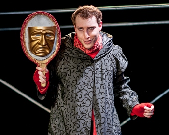 This massive difference in scale clearly presents enormous challenges for a company that is used to being able to do things like having actual vehicles drive on their stage, or have a fly-by of WWII era planes (which happened at the close of their production of South Pacific a few years back). To their credit, the MPA made no attempt to try and echo the scale they are able to achieve in their normal venue. In fact, they went in the exact opposite direction, with the program's Director's Notes stating "This version of the show forces us to let go of the tricks, realism, intricate sets and props, and instead, lean into our imaginations and the power of play." Smart move, though I must admit I would love to have seen how they would stage Camelot on Mt. Tam: I can imagine giant castle parapets, maybe a functional moat, and Arthur himself riding in on an actual horse. Sadly, that didn't happen. So let's talk about what they actually were able to pull off. True to director Zoë Swenson-Graham's vision, the production has a very homespun feel, with bare scaffolding, a couple of ladders, and a trunk full of props that the cast open and place around the set at the top of the show (after a brief reminder to remain masked up at all times inside the theater), which begins in a most charming fashion with David Schiller (as Sir Sagramore) playing an overture of sorts on a melodica. Then, oddly, Schiller breaks character and goes into another top of show announcement, re-reminding us to remain masked, silence our devices, and note the exits. In addition to the venue change, this production of Camelot had another hurdle to overcome: losing their Arthur (it was to have been Phillip Percy Williams) less than week before opening night. Music director Phillip Harris graciously stepped into the role. Though he relied from time to time on cue cards he secreted in a book he carried at the performance I attended, and lost his place in the lyrics more than once, his voice is more than a match for the part, which is not generally considered a taxing singing role, which is why Richard Burton was able to play the role on Broadway. Unfortunately, Phillip Harris, despite his vocal chops, lacks the regal bearing Burton brought to the part. He plays Arthur as a gentle ruler, forgiving of faults and kind to his people. This is great, as that's how the role was written. But despite this air of noblesse oblige, Arthur is still a sovereign, and Harris plays him too tenderly for this important aspect of the character to come through. Although this cast is unbalanced, there are some performances worth noting. Izaak Heath's Lancelot is appropriately egotistical, carrying himself with a nose in the air attitude that befits the humbly arrogant nature of the character. Matt Skinner stands out in just the right way: Mordred is the villain of Camelot, and Skinner's glares and sneers are an excellent complement/contrast to the noble nature of Arthur, Guenevere and the Knights of the Round Table. Guenevere (Kristin Joy Serpa) is charming and sweet, maybe even a little too sweet. Yet, she clearly relishes the role, and it would have been interesting to see if her chemistry with the original Arthur would have felt more genuine. This is a somewhat redacted version of the show that won five Tonys in 1961, as several characters are missing, including Merlin and Morgan le Fay. The songs are still there, which almost saves this production, but all in all, I'd rather have seen it on the mountain, under the stars, where the Mountain Play Association can truly shine. Camelot is (because of the recasting) playing a reduced schedule through December 19, 2021, at the Barn Theatre, in the Marin Art and Garden Center, 30 Sir Francis Drake Blvd., Ross CA. Performances are Thursdays at 7:30 p.m., Fridays and Saturdays at 8:00 p.m. and Sundays at 2:00 p.m. Ticket are $35 and the theater is general admission. For tickets and information, visit www.mountainplay.org |