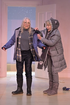 For Wintertime, which opened Wednesday night at Berkeley Repertory Theatre's Roda Theatre, I knew literally nothing about the play beyond its title. I didn't even know it was written by Charles L. Mee, one of the elder statesmen of American avant-garde theatre. When it was over, I felt as if I had been blindfolded, led to a seat, and had the blindfold removed to discover I was on a rollercoaster that would take me on a two-hour fifteen-minute thrill ride through a world of love and anger, foolishness and forgiveness, intimacy and isolation. Featuring a brilliant cast of ten, Wintertime muses far and wide on the nature of love and relationships, alternately waxing philosophical and comical, exhibiting both brains and brawn, the latter in the form of some delightful physical comedy, including a scene of slamming doors taken to a never-before-seenat least by melevel, and of a chair reduced almost to toothpicks by a seething Jonathan. As the show opens (on a gorgeous white-on-white set by Annie Smart), Jonathan (Micah Peoples) and his girlfriend Ariel (Carmen Berkeley) have come to a house in the dead of winter to be alone with each other (and, it is soon revealed, for Jonathan to propose to Ariel). Their alone time, however, lasts about as long as the half-life of Hydrogen-7 when Jonathan's mother, Maria (Nora El Samahy) appears, followed immediately after by her lover Francois (Thomas Jay Ryan). They will soon be even less alone when Frank (James Carpenter), Maria's ex-husband, and Edmund (David Ryan Smith), Frank's new lover, appear, followed in quick succession by Bertha (Lorri Holt) and Hilda (Sharon Lockwood), a couple who live in the neighborhood. From this point on, it's non-stop comedy and conflict as the couples examine their relationships in specific and relationships in general as the snow gently falls, quietly accumulating outside the door, which, for some unknown reason is left open, despite the weather. There are some sweet, even heartbreaking moments of revelation amidst the chaos of the action, as when Edmund says earnestly "I need to be first in someone's life," or when Bob, a delivery man/priest (Jomar Tagatac), wonders, "Why do people kill each other all the time if it's not from love gone wrong?" Mee has created characters who must navigate the treacherous, narrow escarpment between faithfulness and freedom, and director Les Waters has assembled a cast who are, to the audience's great delight, easily up to the task. At the risk of leaving out even one member of this terrific ensemble, I feel I must call attention to performances that stand out even while being perfectly in balance with their scene partners. Lorri Holt, as ever, is able to wring laughs out of seemingly bland lines, and imbues her character with a gentle humanity that makes you want to fix her a cup of tea and have a long, long chat. Jomar Tagatac, after his stunning performance in San Francisco Playhouse's Hold These Truths, is fast becoming one of my favorite Bay Area actors. His ability to hold a moment, pulling us to the edges of our seats, and then hitting the line with the perfect intonation and timing is a wonder to behold. Likewise, James Carpenter exhibits a comfort on stage that dares you to look away from him for fear of missing something wonderful. Thomas Jay Ryan's French accent may slip away from time to time, but that doesn't diminish his comic powerespecially in a striptease in act two that is nothing short of a marvel. It seems the characters in Wintertime all want to be alone in one way or another, but none really are, just as even the most isolated of hermits hiding in a remote mountain cave are still part of humanity. That we need each other, even when we think we don't, may be exactly the point Mee is trying to make. Wintertime runs through December 19, 2021, in the Roda Theatre at Berkeley Repertory Theatre, 2025 Addison Street, Berkeley CA. Shows are Friday-Sunday at 2:00 p.m., with the second half beginning at 7:30 p.m. There is an additional show on Thursday, February 20, 2022. Tickets range from $20-$104. Tickets are available online at www.berkeleyrep.org, or by calling the box office at 510-647-2949. |
