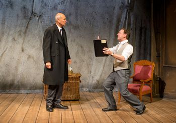 So it was with some expectation (hope?) of being frightened that I took my seat. The minimal seta tattered dark-grey scrim upstage, a single chair, a large lidded wicker basket, a few nesting bucketsfelt appropriately shopworn, even a little eerie. The eeriness is further increased when an older, somewhat gaunt gentleman in a dark suit and trilby hat enters, carrying an attaché from which he pulls a black, leather-bound notebook. He stands center stage, opens the book and begins, somewhat hesitantly, to read: "It was nine-thirty on Christmas Eve..." His character is identified as Actor, but he most clearly is not, and is soon interrupted by a booming voice from inside the house. The voice comes from an actual actor, whom this gentleman has hired to help tell a story from when he was a young man, a tale he believes must be told. The actor is identified in the program as Kipps, which seems odd, as the Actor introduces himself as Arthur Kipps, and the actor playing Kipps is an actor (both in the real world and the world of the play). With persistence and good humor, Kipps expresses a fervent desire to help the Actor to more effectively tell the tale of what Arthur Kipps experienced some three decades prior, which will be accomplished by Kipps playing Kipps as a young man, and the Actor (actually Arthur Kipps) being asked to play all the other characters in his story. The tension builds nicely for the first 20 minutes or so, as Kipps (an energetic Anthony Eden) works to draw the story out of the Actor (a brilliant Robin Herford, who also directed this production) and convince him that, if he wants to keep his intended audience enthralled, it "must be offered in a form that is remotely palatable," no matter how horrible its subject matter. And by the end of the story we will learn that its subject matter is quite horrible indeed, being a gothic tale of tragic events. The adaptor's notes also state that "The fear is not on a visual or visceral level, but an imaginative one." Herford has taken this to heart, for he has created tension not through images of horror, but by hiding the threat, revealing it to us only in brief flashes, leaving it to us to imagine what terrors Arthur Kipps experienced as a young solicitor attending to the estate of an old woman who had lived in a creepy house on the edge of a foggy marsh. All this begs the questionwas I frightened? No, I was not. Startled? Yes, several times, but I never felt a quickening of the pulse, or the cold dread of knowing something awful was about to happen but not knowing what or when. Yet, despite my hopes of experiencing a good scare, I was nonetheless enraptured by the outstanding performances of both Herford and Eden. The show's program notes that Herford commissioned and directed the first adaptation of The Woman in Black, has directed multiple stagings of the show, and directs every new cast of the show in its seemingly permanent home of London's Fortune Theatre. It's no wonder Herford seemed almost preternaturally at ease with the playeven when his character is anything but at ease. From his initial moments as a reluctant thespian to the terrors of recalling the horror the character experienced first hand at Eel Marsh House, Herford is a joy to watch. There is a moment early on when, simply by pushing his reading glasses down to the tip of his nose, the Actor discovers the voice of the character he is attempting to inhabit at that moment. I doubt you will find a more nuanced and precise performance on any stage anywhere. Anthony Eden is equally assured, but in a very different way. I imagine it mightcounter-intuitivelybe a challenge for an actor to portray an actor. He must not only be the actor-ly version of himself, as he plays an actor hired to train a novice to act, he then has to take on the role of an actor playing an actor playing yet another role. But Eden pulls it all off with an easy physicality and the performance of tiny details that add up to something far greater than the sum of those details. I'm at a loss as to how can it be compelling to watch a man scan papers, crumple them one by one, and toss them aside, but Eden somehow makes it so. I may not have been frightened by The Woman in Black, as I expected to be, but I was captivated by the performances of two consummate theatre professionals. The Woman in Black runs through January 16, 2021, at American Conservatory Theater, Strand Theater, 1127 Market Street, San Francisco CA. Tickets range from $35-$85. For tickets and information, please visit www.act-sf.org. |