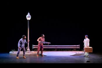 The play was a bit of a sensation when it opened on Broadway last summer, and not merely because it was one of the first shows to appear after the pandemic shuttered the Great White Way. Profane yet poetic, it challenges expectations with its use of classic theatrical tropes and comedic elements to tell such a dark tale. From the very first moments, Pass Over echoes the structure of Waiting for Godot: two characters sparring with each other in clipped, rhythmic language that often turns back on itself in repetition or mirroring, the characters' seeming lack of drive (but no lack of desire), all taking place on a mostly bare set with a single point of focus. In Godot, Beckett called for "A country road. A tree.," while Pass Over has an urban street complete with curb cut and a street lamp that sometimes flickers menacingly, symbolic perhaps of a crumbling infrastructure where Moses (Edward Ewell) and Hitch (LeRoy S. Graham III) live. They talk about their dream of getting to a "promised land" where surely life is sweet. They play a game together of naming the top 10 things that will define this promised land for them: new shoes ("not thrift store new"), "a penthouse suite, champagne on ice," a girlfriend, a brother killed by police brought back from the dead. As they banter, Moses pays little attention to Hitch, instead staring mostly into a middle distance above our heads, as if scanning the horizon. For danger? An opportunity? An escape route? Hitch, meanwhile, bounds about the stage like Tigger, with an energy that is undeniable, but un-channeled. Despite his scanning, Moses and Hitch are taken aback by the appearance on stage of a white man named Mister in an even whiter three-piece suit. (I heard the name as "Master," though the program says otherwise. And "Master" would take the racial tension–already high–to another level entirely.) Mister, played with a rubbery unctuousness by Adam Roy, would seem more at home in Georgiana and Kitty: Christmas at Pemberley than here, so polite and naïf is he, making very liberal use of phrases like "gosh" and "golly" and "gee whiz," like a Radar O'Reilly dropped onto a corner in Compton or the south side of Chicago. It's all very odd and funny in a somewhat uncomfortable way, with Mister opening a picnic hamper to lay out a feast like something Moses and Hitch might fantasize about during their game of "Top 10 Promised Land." Like Little Red Riding Hood, Mister was on his way to his mother's house but "got turned around," and now he doesn't want to be any trouble at all. In fact, he's somehow managed to pack an item that was on Moses' top 10 list: collard greens with pinto beans. But when Adam Roy returns as Ossifer (a "po-po" as Moses and Hitch call the police), things turn dark indeed. Forced to their knees, and worse, Ossifer reminds us of the power structure that exists outside the space these men have created for themselves on this street, an authority that canand often doeskill men like Moses and Hitch with regularity and impunity. For all their grand dreams of champagne and caviar, Moses and Hitch are going nowhere. The deck is far too stacked against them. Rather than play the game, should they throw in their hands, or play until the cards are taken from them? Sadly, Nwandu's script never adequately addresses what might be the future for Moses and Hitch, but it certainly isn't a penthouse suite or a country manor. Pass Over runs through February 20, 2022, at Marin Theatre Company, 397 Miller Avenue, Mill Valley CA. Performances are Tuesdays-Sundays at 7:30pm, with matinees Saturdays and Sundays at 2:00pm. Tickets range from $25-$60. For tickets and information, please visit marintheatre.org or call the box office at 415-388-5208. |