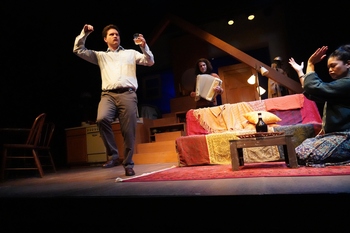 Switching back and forth between a New York City suburb in the late 1960s and a cabin in Colorado in 1985, director Nancy Carlin stages the action so expertly that we are never lost in time as Zim's story unfolds: a tale of two brothers who take very different paths in life, yet somehow always end up together. Alyosha, the older brother, follows a route most pleasing to his father (medical school), while Joshua drops out of Harvard to trod a spiritual path that leads him to India to study with Meher Baba (who coined the aphorism "don't worry, be happy") before ultimately settling in as a committed Buddhist. Sidney considers his search to be a "spiritual treasure hunt," but Joshua counters that "all religions had gifts for me." Hovering over all this familial tsuris are three presences. One of these, Rinpoche (Ogie Zulueta), serves as an embodiment of the Eastern philosophies embraced by Joshua, and occasionally offers bits of Buddhist wisdom, like "When ordinary is awakened, it becomes extraordinary." The second dominating presence in the lives of the Zim boys is mother Eva (Danielle Levin), who suffers from Huntington's Disease, a debilitating illness that causes a wide range of symptoms, none of them pleasant: depression, dementia, and uncontrolled movements that can seem like a strange form of dance. She is played with an angry ferocity by Levin, who inhabits a character much older than she with such intensity and commitment that even without old-age makeup or gray hair dye she is never less than believable as a woman of 50-70+. It's a startling performance that is both hard to watch and hard to look away from. But it is the third presence that is most ominous: Huntington's disease itself. Huntington's is an autosomal dominant inherited disorder: if one of your parents has it, you have a 50/50 chance of inheriting the defective gene. It is this coin flip possibility that weighs most heavily on the mind of younger brother Joshua. Despite being in a loving relationship with the supportive Padma (Rinabeth Apostol), Joshua carries the weight of what might befall him as though he were Atlas, forced to carry the world on his shoulders. Magill and, especially, Apostol move almost like dancers as they swirl and sway and entwine themselves around each other–in ways that almost mimic the herky-jerky movements of mostly bedridden Eva. Carlin has assembled a wonderful cast. Lopez-Morillas, a 40-year veteran of Bay Area stages, is perfection as a Polish immigrant with decades of trials and labor behind him, all weathered in the hope his sons will be a little better off. As his son Joshua, Magill seems to be ever on the edge of a breakdown of some sort, as though he must maintain his pessimism in order to prepare for the disappointment he senses is his fate. It feels a bit like some of the reasoning behind why a glass is broken at a Jewish wedding: to remember that even in moments of joy, the world is full of pain and loss and in need of healing. Joshua's healing–for this is most certainly Joshua's play–will come in an unlikely fashion, but one that seems, unfortunately, unjustified by what has transpired before. (At least in terms of Alyosha's participation in it.) Yet the action Joshua takes at the play's conclusion seems as inevitable as a coin coming up either heads or tails. Red Winged Blackbird runs through March 20, 2022, in the Live Oak Theatre, 1301 Shattuck Avenue, Berkeley CA. Shows are Thursday, Friday and Saturday at 7:30 p.m. and Sunday at 2:00 p.m. Tickets (general admission) are $20, with discounts available for students, seniors, and groups. For tickets please visit EventBrite.com. |