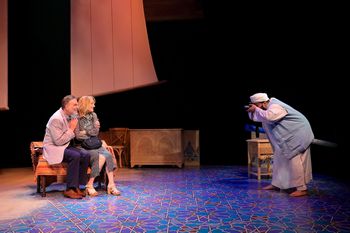 The trouble here is with Paul's and Jean's marriage. Though they feign happiness and contentment, it's clear they have serious issues. They talk at each other, around each other, and occasionally to each other, but never with each other. The tension begins early on, when Paul is chatting with Maha about the differences between American and Islamic cultures. In true "ugly American" fashion, Paul adopts a tone of superiority and privilege as he (he thinks politely) asks Seif "Has there ever been at any time in history a theocracy that worked out well?" Paul thinks he's being culturally aware and respectful, but as will become clear over the next 100 intermission-less minutes, what Paul thinks he's saying, and what he's actually communicating are often very different. When Jean returns from a dip in the hotel pool, wearing only a bikini with a towel around her waist, Paul is certain his wife is offending Seif's and Maha's Islamic sensibilities. Paul doesn't want to offend, saying he "respects custom and traditions," to which Seif wryly replies, "If you will allow me not to offend you back." Maha assures them that they are guests, on vacation, and they should enjoy themselves without worrying about giving offense. Maha tells Seif (they sometimes speak to each other in Arabic to keep these asides to themselves, indicated to us by the loss of their Egyptian accents) that, if they "resent them for being westerners," their career as tour guides may be short lived. Changing the subject, Maha and Seif slip back into English, and discuss the plans for Jean's and Paul's evening–a sunset cruise on the Nile–and the days to come. It's on the boat, ostensibly for a romantic outing, that things really start to go south for Jean and Paul. In Yussef El Guindi's dramatically taut play (with skilled direction by John Langs and wonderful performances from each member of his cast), Paul comes across as a bit of a conundrum. Not to us, but to the other characters, for it seems Paul can never answer a question directly or maintain a linear conversation. He's always hedging, or veering off in a different direction, changing topics, and–above all–being oblivious to the impact his ill-considered comments have on those around him. There's a terrific moment on the boat trip that perfectly encapsulates the way Paul fails to connect with the world around him: he wants the boatman to take a picture of him and Jean, but with almost zero English skills, the boatman keeps snapping photos at exactly the wrong moment in a way that perfectly mirrors Paul's own clumsy timing and clueless commentary. Hotter Than Egypt isn't a comedy by any means, for what's at stake for these characters (primarily their continued relationships) is deadly serious, yet the show is filled with laughs. There are moments when Paul casually blurts out something deeply offensive–which he imagines is perfectly polite–that caused the opening night audience to gasp in a sort of he-didn't-just-say-that-did-he way that reinforces just how oblivious he is. El Guindi's language is so dynamic and his structure so well crafted that the tension builds slowly and inexorably toward a conclusion that will be tragic–in one way or another–for all of these characters. Hotter Than Egypt runs through April 24, 2022 at Marin Theatre Company, 397 Miller Avenue, Mill Valley CA. Performances are Tuesdays-Sundays at 7:30 p.m., with matinees Saturdays and Sundays at 2:00 p.m. Tickets range from $25-$60. For tickets and information, please visit marintheatre.org or call the box office at 415-388-5208. |