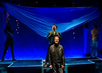 In 2018, Erik (James Aaron Oh) and Bryant (Matt Weimer) are partners navigating the perils and pleasures of an open relationship. Erik, much younger than Bryant, is "on PrEP," a term used for those taking Truvada, a little blue pill that prevents the transmission of HIV with 99% effectiveness. Without the worry of contracting a life-changing (thankfully no longer life-ending) virus, Erik feels free to engage in casual hookups. But when he brings a case of gonorrhea home to Bryant, it exposes conflicts in their relationship that go far beyond the usual perils of non-monogamy. For Erik, the 1980s sound like a sexual paradise: anonymous hookups, glory holes, bathhouses, and all the behavior that led to deadly consequences, as Bryant knows all too well, having lived through it. But Jared, Bryant's first–and, it seems, only–true love, did not. We meet Jared (Troy Rockett) when Erik opens a roman à clef novel Bryant wrote about his relationship with Jared and its tragic ending. As he reads, scenes of the novel are acted out behind him, revealing Jared's plans for suicide as a way to avoid the horrifyingly slow, painful deaths being experienced by so many of their friends. "So depressing," Erik thinks, putting down the book. After another argument with Bryant, he fails at another attempt at finishing chapter one, choosing instead to suck on his vape pen, gobble down a handful of CBD gummies, take a tug from his vodka-filled flask, and pop his daily Truvada, staring lovingly at the pill bottle and saying "you make everything better." He inserts his ear buds, lays back, and falls into a reverie. It's here that we meet Truvada itself, in the form of actor Akaina Ghosh, clad in a black skinsuit with lacy blue accents, plucking lazily at an electric guitar. She prefers to be called "Agent 701" ("It's cooler," she says), and she flits through the play like an odd sort of omnipresent Puck, a quasi-magical being with both light and dark sides. When Agent 701 comes upon a sleeping Erik, she gently removes the ear buds and replaces them with a pair of headphones hooked to a Walkman. When Erik wakes, he finds he's transported back to the 1980s, inside Bryant's body. "I'm white now," Erik says at one point, "I can do anything!" PrEP Play, or Blue Parachute addresses the generation gap that exists between older LGBT people (especially gay men) who lived in a world where HIV was a death sentence, marriage equality felt like a pipe dream, and homophobia ran rampant, and a younger generation who grew up when fewer people cared about other people's sexual orientation, marriage equality was the law of the land, and HIV was a condition more akin to diabetes or high cholesterol. Manageable. As Liu's plot move back and forth between these two eras, it all takes place on an all-blue set (by Carlos Aceves), with mobile risers and steps, outlined with lights, that make it seem almost as if we are inside the magic blue pill. Though PrEP Play, or Blue Parachute is finely crafted, Liu's work is let down somewhat by the weaknesses of the cast. As Bryant and Erik, Weimer and Oh lack chemistry. Though they argue and spat, there's no real tension in their interactions, and the emotions they express come across as mere words, not true emotion. As Agent 701, Ghosh is fun to watch, but their character would be well-served by their adding a more impish, trickster energy to Agent 701. Troy Rockett, who plays both Jared and Bryant's doctor, does the best work here. Though his portrayal of Jared lacks a certain tragic pessimism that seems to be in Liu's text, he plays the doctor with a sweet gentleness and patience that makes you wish he was your physician. Though stiff at first, Oh seemed to find his feet as the play went on and further performances of PrEP Play, or Blue Parachute may benefit from his spending more time in the role. While it may be impossible to change the past–as Jared says at one point, "My story is not yours to rewrite."–Yilong Liu is taking playgoers on a fascinating thought experiment on what could have been, and what might still be. PrEP Play, or Blue Parachute runs through May 8, 2022, at New Conservatory Theatre Center's Walker Theatre, 25 Van Ness Avenue, San Francisco CA. Performances are Wednesdays-Saturdays at 8:00 p.m. and Sundays at 2:00 p.m. Tickets are $25-$65. For tickets and information, please visit NCTCSF.org or call 415-861-8972. |