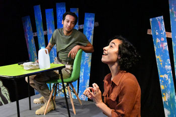 It is this rather porous barrier between civilization and savagery that playwright José Rivera explores in his References to Salvador Dalí Make Me Hot, which opened this past weekend in a Custom Made Theatre Co. production staged in the Phoenix Theater. The set (by Sarah Phykitt) references Dalí in multiple ways, most notably with a dozen or so half-open drawers, symbols in Dalí's art of memory and the unconscious. Fitting, because Benito (Caleb Cabrera) is a soldier, a veteran of Mideast wars, struggling with the memories of combat and atrocities committed. Before we meet Benito, however, we will first encounter the Cat (Alejandra Wahl), who lives with Benito's wife Gabriela (Carla Gallardo) in their house in Barstow, a small town in the California desert, a speck of civilization in a sea of wildness. In the opening scene, Cat, a symbol of domestication, runs into Coyote (Gabriel A. Ross), who tempts her to join him in the wilderness for a night of freedom and carnal delights. "How do I keep my freedom?" Coyote asks, almost rhetorically. "I don't care about their love!" he howls, referring to the humans who provide Cat with a life of relative comfort and safety, something that appeals little to Coyote. Watching over these proceedings is the Moon (also Caleb Cabrera), a impartial observer, a lifeless body that only reflects light, caught in some in-between space. "Shakespeare called me inconstant. I never recovered from that," complains the Moon. Benito has never really recovered from his experiences at war, something that becomes clear when he returns from his duties in what he calls "the field." The war is over, but it's never really finished for Benito, who struggles with PTSD. Likewise, Gabriela has her own demons. In her dreams (and perhaps in reality), she sees the cacti around their house coming closer and closer–the wild word inching ever nearer, threatening the space of peace and civilization she has created for herself and Benito. She wants to create something better for herself and Benito, but her man is committed to staying in the Army, where his beast-self is valued. Gabriela wants to bring him back into civilization, to re-tame him as it were. For his own good, as well as hers. As Gabriela and Benito, Gallardo and Cabrera have an easy chemistry with each other. Despite the tension within their relationship, it's clear they are meant to be together. Each tries to reach out to the other to bring their partner closer, to align them more accurately with their own goals and desires. Although it's clear Benito can never truly be tamed, and Gabriel's wild side never fully released, it's fascinating to see how playwright Rivera uses this tension to create the drama that keeps the audience engaged. Their passion, like the full moon, illuminates every aspect of their relationship, and Gallardo especially expresses that passion with a fiery gaze that refuses to suggest even a hope of surrender. References to Salvador Dalí Make Me Hot, like the artist himself, inhabits a world that is both strange and familiar. It challenges us to think about what we might have lost all those thousands of years ago when we began to tame the wild world with agriculture, civilization and culture. Directed ably by Katja Rivera (no relation), it's that rare absurdist (in part) play that is fully grounded in ordinary humanity. It's magical realism that elegantly bridges those two seemingly opposite qualities. References to Salvador Dalí Make Me Hot runs through July 24, 2022, in The Custom Made Theatre Co., Phoenix Theatre, 414 Mason Street, Suite 601, San Francisco CA. Shows are Thursdays, Fridays and Saturdays at 8:00 p.m. with matinees at 2:00 p.m. on Sundays. Tickets are $30-$40. For tickets and information, please visit www.custommade.org. |