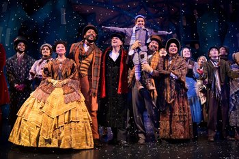 Carpenter is well supported by the rest of the cast, each of whom seem to relish their roles in this beloved tale. Tagatac's Crachit has an irresistible charm and a sparkling glint in his eye. He seems to radiate love and good will. As Marley (sadly a smallish role), Dan Hiatt could credibly be accused of chewing the scenery, but it's clear his Marley feels so strongly about the message he is delivering that it requires every ounce of passion within him. The first two ghosts are equal parts droll docents and stern taskmasters–though not terribly ominous. At least to us. But if you bring young children to the show–and you should–be prepared for them to be a little freaked out at the appearance of the Ghost of Christmas Yet to Come. The sets (by John Arnone) are not opulent or overly detailed, but nevertheless have a grand scale and a grittiness that blends perfectly with Dickens' text. Beaver Bauer has likewise done a first-rate job of creating costumes that befit both the period and the characters who wear them. It's fitting that A Christmas Carol comes at the end of the year, when we might all benefit from a reminder to look back at our pasts, imagine our futures, and consider how we might strive to be better, more loving, more generous versions of ourselves. If you're like me, you also might find yourself tearing up a bit as little James Coniglio as Tiny Tim delivers that famous closing line, "God bless us every one." This is nothing short of a spectacular rendering of a classic that feels as fresh and vital as if it just came out of Charles Dickens' quill. A Christmas Carol plays through December 24, 2022, at American Conservatory Theater, Toni Rembe Theater, 415 Geary Street, San Francisco CA. Performances are Tuesdays-Saturdays at 7:00 p.m., Sundays at 6:00 p.m., and Saturdays and Sundays at 1:00 p.m. There will be 1:00 p.m. matinees on Wednesday, December 21, Friday, December 23 and Saturday, December 24. There will be no evening performances on December 11 or 24. Tickets range from $25-$130. For tickets and information, please visit http://www.act-sf.org. |