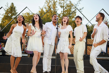 So it was (for the most part–more on minor disappointments later) with this season's first TTC revue, The Beat Goes On, which wowed the crowd this past weekend at Belos Cavalos in Kenwood in Sonoma County, and continues on through July. TTC normally stages their shows in the Winery Ruins at nearby Jack London State Park, but due to a lawsuit requiring a study of the impact TTC shows have on the park, a new venue was required. With short notice, TTC managed to create a perfectly lovely alternative on Belos Cavalos' 30-acre property. The Beat Goes On takes the audience through a tour of songs from the 1960s, '70s and '80s–perfect for a crowd composed almost entirely of baby boomers, for whom the songs are a soundtrack of our youth. Not unlike the stage show of Moulin Rouge, The Beat Goes On packs more than 70 songs (or snippets thereof) into its two-hour running time. The show moves chronologically through the decades, starting with the '60s, with songs from artists as varied as The Beatles, Tom Jones, Frank Sinatra, Sam Cooke, Buffalo Springfield, and many more. The cast, under the direction of Susan Draus, perform these selections with tremendous commitment. They are never merely singers or dancers moving in time to music, but always inhabiting a character. Watch any member of the cast–even any chorus member upstage–and you'll see them playing a jilted lover or a zoned-out beatnik or an angry protestor–or any of a number of personae. One of the hallmarks of Transcendence Theatre's productions is their attention to detail. You will experience this not only with the efficiency of their operation (ticketing, parking, concessions–everything runs smoothly), but also in every element of their shows. Consider the satellite stage built for this show. In addition to providing seating for the string players, it is also dressed like a teenager's bedroom, with posters of musical acts on the wall that changed as the decades did. It also becomes a stage where small theatrical moments take place, like two performers pretending to try smoking for the first time while the rest of the cast performs Dobie Gray's "The 'In' Crowd." It seemed every time I glanced over to this stage, something theatrical was happening. The costumes (by Jenny Foldenauer, assisted by Jenna Morris, Agnes-Arabelle Sommier and Ty Schoeningh) match each era with color and vibrancy. (Though I am at a loss for why four of six women are in Mondrian print dresses and the other two wear colorful but somewhat clashing patterns, while all six of the men in the same number are in similarly-flowered shirts.) The performers themselves were universally excellent, but Aaron LaVigne (whom I saw play the title role in the 50th anniversary touring production of Jesus Christ Superstar) stands out for his soaring tenor. Kelli MacMillan, who sings Jefferson Airplane's "White Rabbit" had me worried during the first few bars of the song, as she struggled a bit with her lower register. But when she works her way up into the higher notes, wow–what a tone! All the power of that song comes pouring out. The segment of protest songs from the '60s is a very powerful portion of the show, and when they sing "There's a man with a gun over there..." that 50+ year old Buffalo Springfield tune is oddly, and sadly, timely. While the first 2/3 of the show–the '60s and '70s–is brilliantly done, the final segment, focusing on '80s music (leg warmers aplenty, but no parachute pants?), seems to drag a bit. The songs are less iconic, and though some numbers are terrific (especially "Love Shack" and "Livin' on a Prayer"), the segment doesn't jell quite as nicely as the rest of the show. Despite this, The Beat Goes On is a terrific evening's entertainment. If you've seen previous TTC shows and liked them, you'll be happy you got a ticket for this one, too. If you've never made the trek to Sonoma, what are you waiting for? You still have two weekends to catch the beat. The Beat Goes On runs through July 2, 2023, at Transcendence Theatre, Belos Cavalos, 687 Campagna Lane, Kenwood CA. Performances are Friday, Saturday and Sunday at 7:30 p.m. Ticket range from $35 - $160. "Gold Level" tickets includes VIP parking, two glasses of wine and admission to the pre-show lounge. Tickets and additional information can be found at www.TranscendenceTheatre.org. |