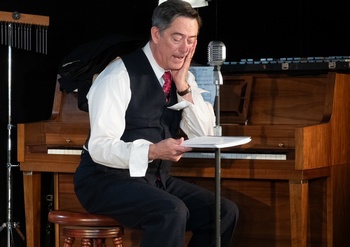 If you've never seen the film, be aware, there are many spoilers ahead. (And if by chance you haven't seen it, what kind of heartless curmudgeon are you?) It's a Wonderful Life tells the story of George Bailey, who lives in the small (fictional) New York town of Bedford Falls. George is a real mensch: as a boy, he saves his brother from drowning in a frozen pond. Later, while working as a teen for the local pharmacist, he catches an error that would have resulted in tragic consequences. When his father dies, he steps up to take charge of the family business, a "building and loan" company, even though it means putting his own dreams of travel and college on the back burner. Along the way, he is steadfast in standing up to the local tycoon/slumlord, Henry Potter. When, on Christmas Eve, his Uncle Billy misplaces $8000, it threatens to bankrupt the building and loan and send George to jail for bank fraud. Despondent, George decides to commit suicide. But before he can go through with his plan, his guardian angel Clarence Odbody comes down from heaven to show him how different Bedford Falls would have been if George had never been born. I suppose I thought this heartrending story when rendered on stage as a "live radio play" wouldn't affect me quite the same way the film does. Maybe, I thought, without Capra's genius and the verisimilitude of film, I could get to the end with dry eyes. And yet, there I was, in the dark theater, dabbing at my face with my hanky. In the hours since, I've thought a lot about why It's a Wonderful Life affects me like this. (And I wasn't alone in crying–there were lots of red eyes leaving the Barn Theater.) I've come to the conclusion that it's not Capra's genius, but that of Philip Van Doren Stern, who wrote the short story on which the film is based. At every turn, George sacrifices his own desires and dreams in order to help others: his family, his friends, his neighbors, and the customers at Bailey Brothers Building & Loan. George is incredibly kind, selfless, and big-hearted. When fortune turns against him, it feels horribly cruel. It's an age-old question: why do bad things happen to good people? So when everyone rallies around George in his time of need, it feels almost impossibly redemptive. Only the stoniest of hearts can ignore the joy and relief George feels in that moment. As Clarence the angel tells him, "No man is a failure who has friends." But enough about me and my soft heart. Over the years I have been to many productions of the Ross Valley Players. But I believe this is the best work they have ever done. (The adaptation of the story into a "live radio play" is by Joe Landry.) Everything takes place in the confines of a New York City radio station. The set by Mikiko Uesugi is magnificent, and a perfect fit for the intimate Barn Theater. There's a control booth hidden behind a window below the "On Air" sign. There are tables filled with the props needed to create the sound effects. (Props by Dianne Harrison.) Microphones are placed downstage, there is a lighted "applause" sign, and even a Christmas tree in the corner. At stage left is a piano, and two chairs and a guitar and ukulele on racks are placed stage right. It's Christmas Eve 1946, and a group of five actors have come together to perform the story for a nationwide audience. Over the course of 90 minutes, the cast play multiple roles, perform all the sound effects (including some delightfully clever ones, as when one character delivers his lines into a glass in order to make his voice sound like it's coming over a '40s-era phone line), and even provide the music for the show, tinkling on the piano and strumming the guitar and ukulele. The cast is a wonderful ensemble, but special kudos go out to Loren Nordlund, who plays the host of "Playhouse of the Air," Freddie Fillmore, as well as more than a dozen more characters, shifting his malleable voice to make each distinct and delightful. The rest–Evan Held, Elenor Irene Paul, Molly Rebecca Benson, and Malcolm Bowman Rogers–perform their parts with a delicious earnestness that borders on corn, but is nonetheless perfect for a '40s-era radio cast. Director Adrian Elfenbaum keeps the action sprightly and the comedy perfectly timed. Every holiday season I seem to find a production that is a wonderful alternative to the usual fare of A Christmas Carol or The Nutcracker. This year I heartily recommend Ross Valley Players' production of It's A Wonderful Life: A Live Radio Play. It's a gift to all of us in the North Bay (and beyond). Just make sure you bring some tissues! It's A Wonderful Life: A Live Radio Play runs through December 17, 2023, at Ross Valley Players, Barn Theater, in the Marin Art and Garden Center, 30 Sir Francis Drake Blvd., Ross CA. Performances are Thursdays, Fridays and Saturdays at 7:30 p.m. and Sundays at 2:00 p.m. Ticket prices are $35 general admission. For tickets and information, please call 415-456-9555, ext. 3. |