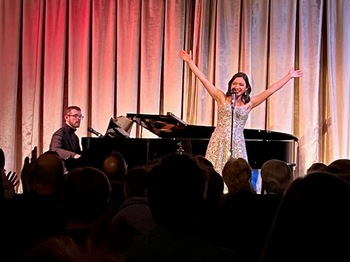 Over the course of 90 or so minutes, Benko and her extremely talented pianist, husband Jason Yeager, banter back and forth in a delightful old married couple sort of way. At the top of the show, Yeager asks the audience to welcome a singer who got her big break stepping in for another performer: "Please welcome Sutton Foster!" Corrected by Benko, standing off to one side of the stage in San Francisco's Venetian Room, Yeager tries again: "Ladies and gentlemen, Lea Michele! No? Shirley McLaine!" When he finally gets it right, Benko bounds onto the stage and launches into a sweet story of how she got her first Broadway gig in Spring Awakening, segueing into a powerful rendition of that show's "Mama Who Bore Me." (As she was circling her breast with the hand not holding the mic while she sang, she quipped "this is the original choreography. I think.") From there, Benko and Yeager kept the songs–and wonderful, even heartwarming, stories–coming. She spoke of her rise from ensemble swing (someone who covers multiple roles in the ensemble) to understudy to alternate to her six-week run as Fanny Brice in the Broadway revival of Funny Girl (between Beanie Feldstein and Lea Michele) and playing Ruth in Barry Manilow's musical about the Comedian Harmonists, Harmony. When she got her first Broadway gig as a star, her father brought a bright red towel to lay at the stage door so she could enter the theater on her own "red carpet." I told you, heartwarming. Her set was surprisingly diverse, including not only Broadway mega-hits such as "I Dreamed a Dream" from Les Misérables and "I'm the Greatest Star" from Funny Girl, but Wardell Gray and Annie Ross's jazz hit "Twisted," John Denver's "Leaving on a Jet Plane," Cole Porter's "I Love Paris," and, as a fitting close, Ben E. King's (written with Jerry Leiber and Mike Stoller) "Stand By Me." As sweet and sassy as her vocals could be, it was the stories of her career that truly captivated the sold-out crowd. It was a tale of struggle, commitment, and chasing a dream that almost no one ever catches. She told us of her love for theatre, but also about her insecurities, thinking about the times she got to step in for a star and wondering how many people in the theater "will be disappointed because it's me." Julie Benko is set to grace New York's Café Carlyle on May 3-4, 2024. Check her out. I promise you won't be disappointed. Standby, Me played just one night, April 14, 204, at the Fairmont Hotel, Venetian Room, 950 Mason St, San Francisco CA. For information on the venue, please visit www.fairmont-san-francisco.com. |