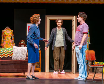 No, what Arnold Beckoff is interested in is lasting, monogamous love–the sort of thing his mother (Nancy Carlin) would approve of, if only Arnold wanted a relationship with a woman. When Arnold meets Ed (Patrick Andrew Jones), things look good for a while. Arnold is smitten with Ed–at least until Ed's bisexuality rears its head and he chooses a more conventional life with a woman he was fixed up with: the sweet and pretty Laurel (Kina Kantor). After some mourning, Arnold moves on, meeting an attractive hustler turned model named Alan (Eric Young). Without giving too much away, Arnold is in for more mourning and some painful conversations with Mama when she comes to visit from Florida. But first there will be significant discomfort when Arnold and Alan visit Ed and Laurel at Ed's country house in upstate New York. It's in these scenes where director Evren Odcikin's choices lead the production astray. As staged by Odcikin, all the scenes in the country house take place in a giant bed with four pillows, tilted at an angle of about 60 degrees, so the characters are facing us. I imagine the point of this is to reinforce the sexual tension between the two couples that would permeate the atmosphere in every room of the house, but Fierstein has already made this quite clear in his text, so it seems a bit on the nose for Odcikin to hammer it home in this way, even though some of the scenes are ostensibly taking place in locations outside the two bedrooms symbolized by one bed. Although Linnard does terrific work at Arnold, showing his huge range (his character is wildly different than the last show in which I saw him perform, the wonderful Born With Teeth at Aurora Theatre Company), the rest of the cast seem to always be out of synch with each other. Although Joe Ayers does a good job as an adult man playing a 15-year old boy (Arnold's foster son, David), the cast never really come together as an ensemble. The main problem with Torch Song may not be a lack of chemistry, but rather a lack of timeliness. For although there are still far too many homophobes in the world–especially in positions of power and influence–everyday life for the LGBTQ community has changed so much for the better that this Torch Song feels a little creaky. The show is nearly saved by Linnard's performance, and the many funny, kvetch-y/bitchy queen lines Fierstein gives his characters. Bemoaning one night stands, Arnold states that "a thing of beauty is a joy 'til sunrise." Fearing the back room scene, Arnold worries, "what if I don't glow in the dark?" Or his "A drag queen is alike an oil painting–you gotta stand back to get the full effect." Despite the wit on display, Torch Song drags on (pun not intended), covering ground that feels too far removed from contemporary gay life to feel truly relevant. Simply put, we are thankfully in an era where Arnold's sad confession to his mother about his life and the life of his friends: "Queers don't matter. Queers don't love–and those that do get what they deserve" lacks the veracity it had when Fierstein first wrote the line some 40+ years ago. There is humor and heartbreak in Torch Song, but in this production it's hidden behind a facade nowhere near as attractive or entertaining as drag queens strive to be. Torch Song plays through June 2, 2024, at Marin Theatre Company, 397 Miller Avenue, Mill Valley CA. Performances are Tuesdays-Sundays at 7:30pm, with matinees Saturdays and Sundays at 2:00pm. Tickets range from $39.50-$69.50 (plus fees). For tickets and information, please visit marintheatre.org, or call the box office at 415-388-5208. |
